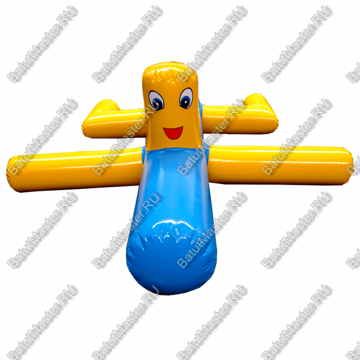 Он выполнен в виде надувной фигуры с доброй улыбкой и «руками»-балансами, за которые удобно держаться или использовать их как препятствия для соревнований.