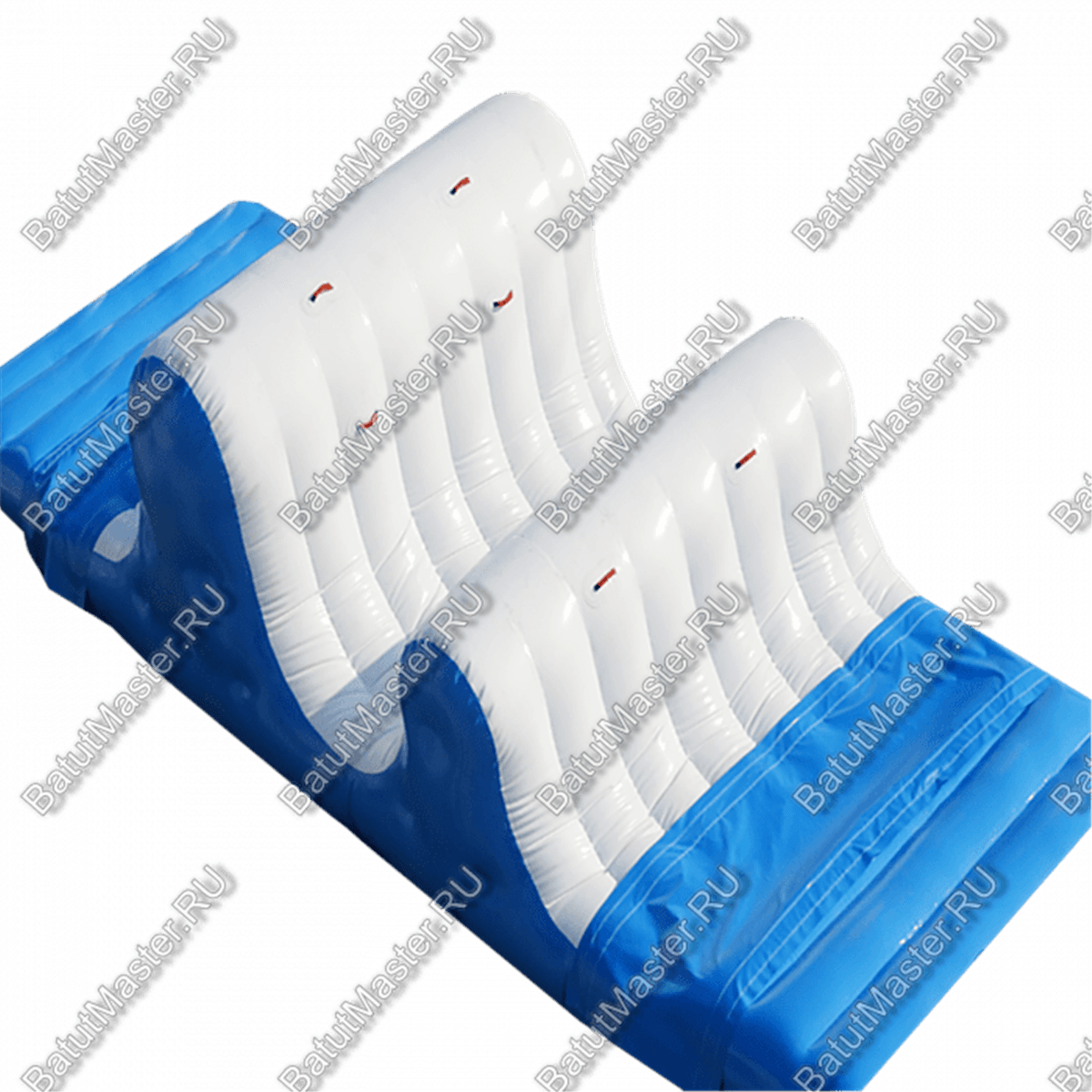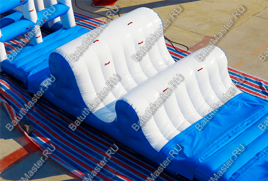 «Препятствия с волнами» — это универсальный элемент водного парка, который сочетает в себе функциональность и зрелищность. Он выполнен в виде рельефной поверхности с чередующимися подъёмами и спусками, имитирующими морские волны. Игрокам предстоит преодолеть эти «водные холмы», удерживая равновесие и стараясь не поскользнуться.