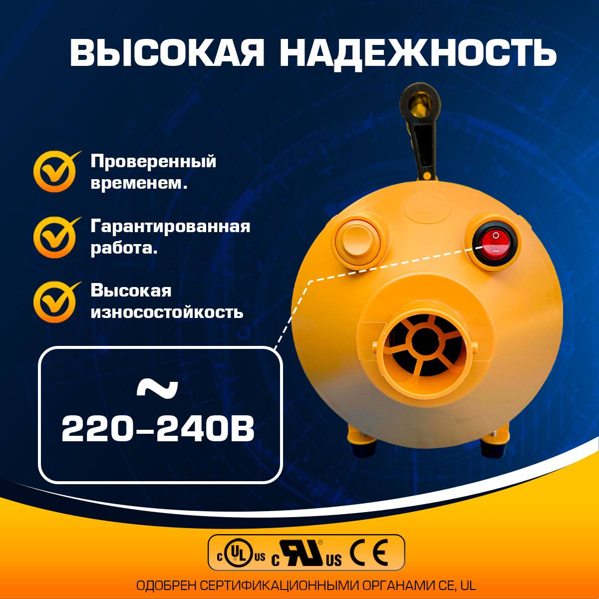 Удобная ручка для переноски позволяет легко перемещать его по территории, а устойчивые ножки обеспечивают надежное положение даже на песке или траве. Не важно, где именно установлен аттракцион — нагнетатель воздуха будет готов к работе!