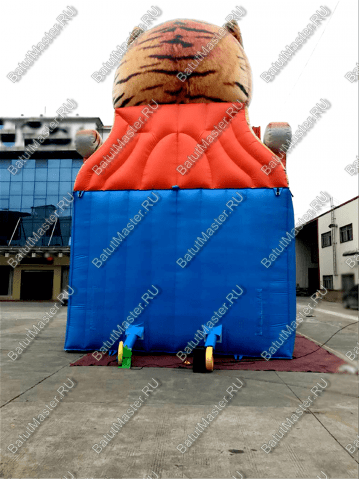 Надувной батут – горка «Большой тигр» отличается великолепным внешним видом и необычным дизайном. Это не просто горка, это полноценная арена для прыжков, веселых спусков и кувырканий. Дети просто обожают спускаться вниз с ветерком, а потом приложив усилия, подниматься вверх. На мягкие модули в виде оленей юные непоседы могут забираться и кататься вперед-назад. Огромная надувная фигура тигра, расположенная вверху горки, будет заметна издалека и привлечет внимание.