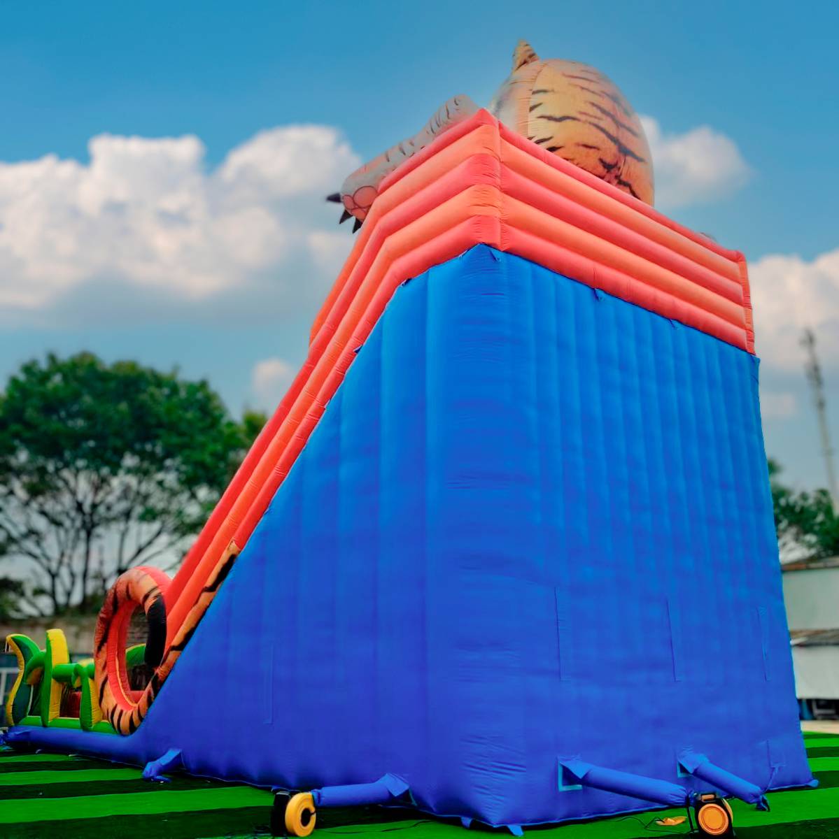 Внешний вид этого батута точно привлечёт внимание не только детей, но и взрослых, ведь мимо огромной надувной головы тигра невозможно пройти мимо. Дизайн горки завораживает, и дети точно влюбятся в такой красочный батут. Аттракцион получил своё название не просто так, ведь основным украшением является фигура тигра с очень качественным принтом.