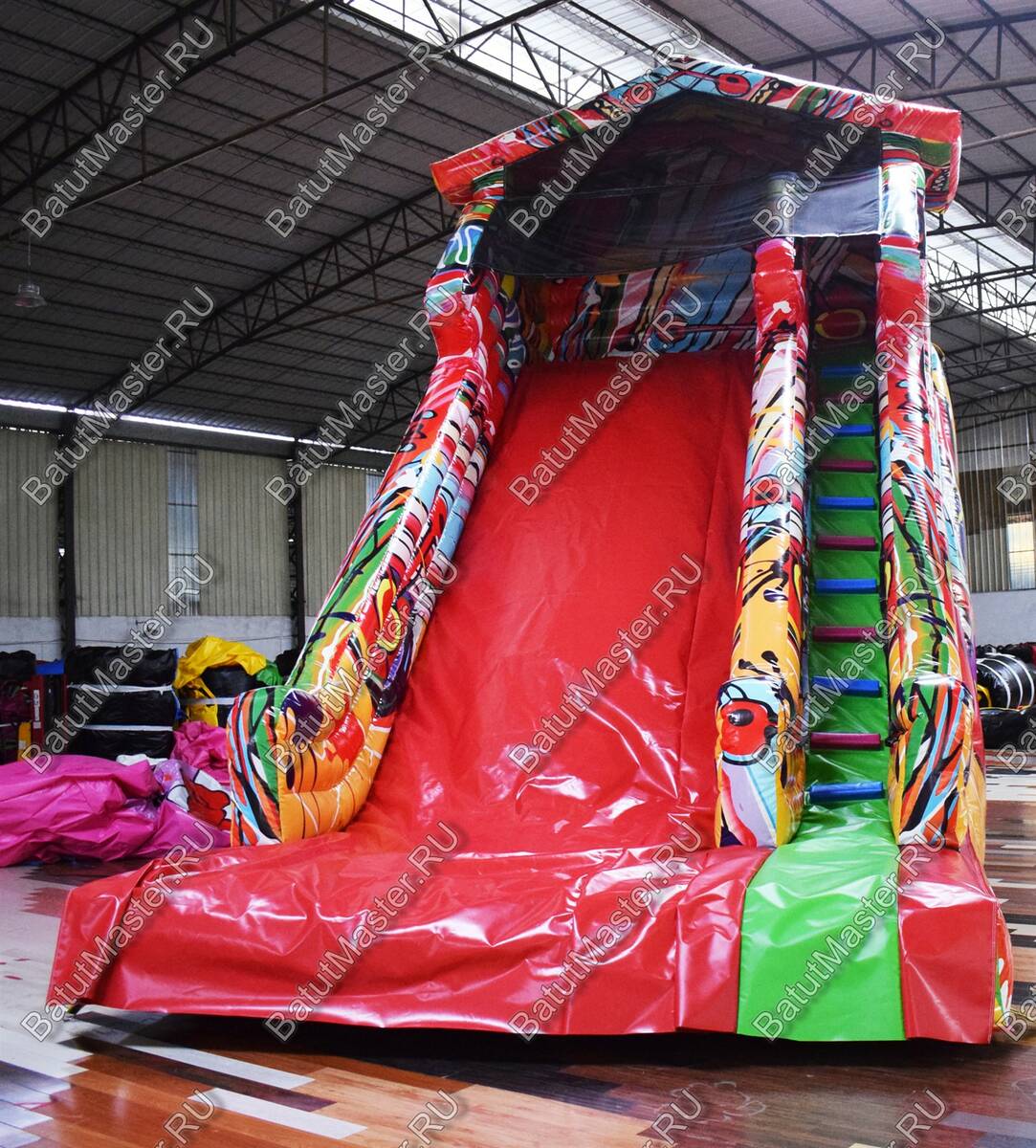 Современная и красочная надувная горка непременно понравится мальчишкам и девчонкам. Она имеет один широкий спуск, на котором могут съезжать одновременно несколько детей. Мальчишкам и девчонкам будет интересно забираться на верх горки, а затем катиться вниз дружной командой. На горке имеется специальный материал, обеспечивающий лучшее скольжение. Яркий, функциональный батут непременно понравится детям.