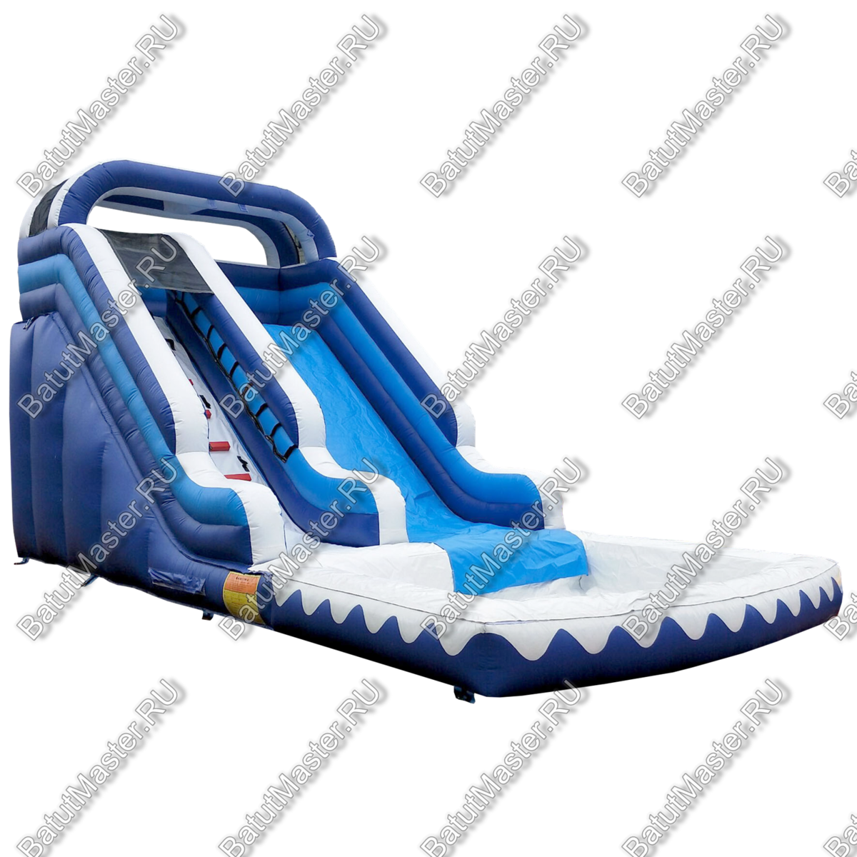 Исходя из названия, становится понятно, что доминирующим цветом этого аттракциона будет синий. Но его гармонично разбавляет белый, а также скромные вкрапления красного в виде лестниц, ведущих непосредственно к самой горке. Горка просторная, что позволяет сразу двум ребятишкам скатиться с неё. Во время движения они никак не будут мешать друг другу, а также не будут чувствовать тестону.