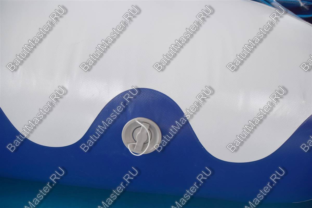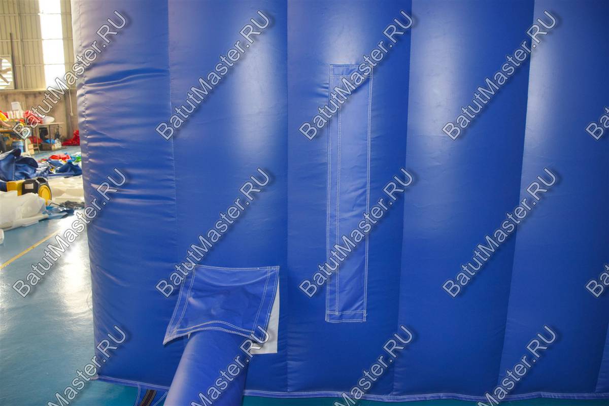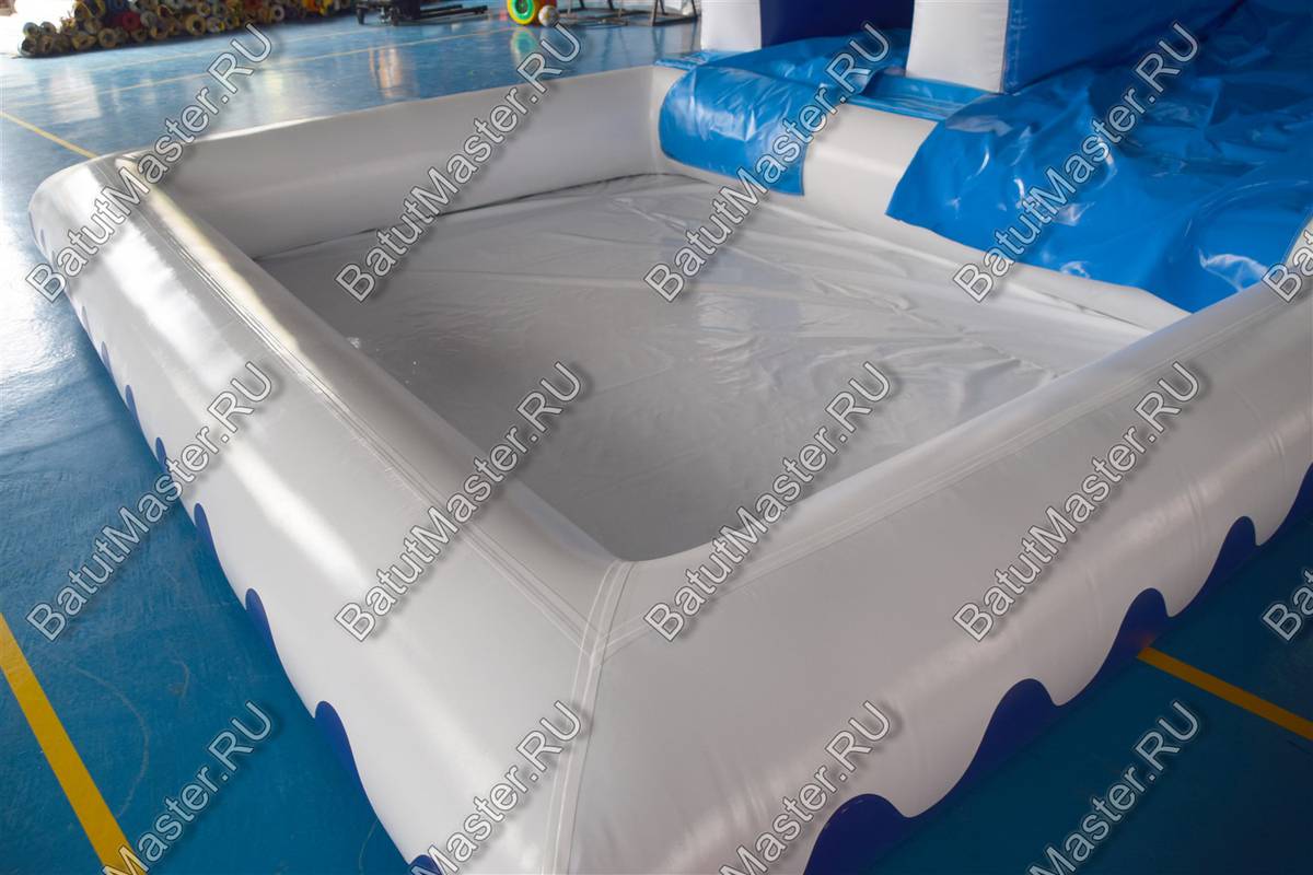 Горка кончается приземлением в специальную батутную зону, на которой изображены морские волны. Зона мягкая, точно обезопасит детей от получения каких-либо травм или же синяков.