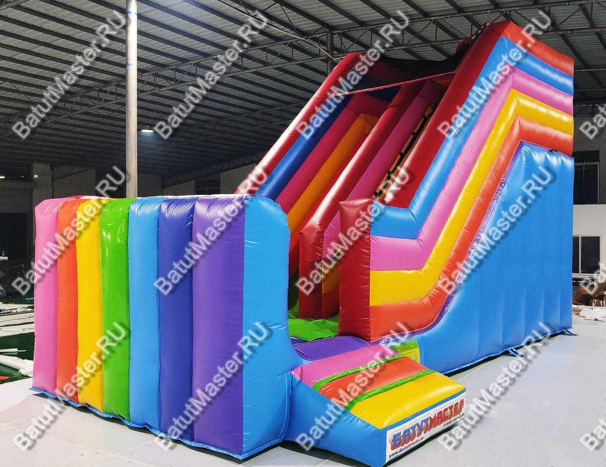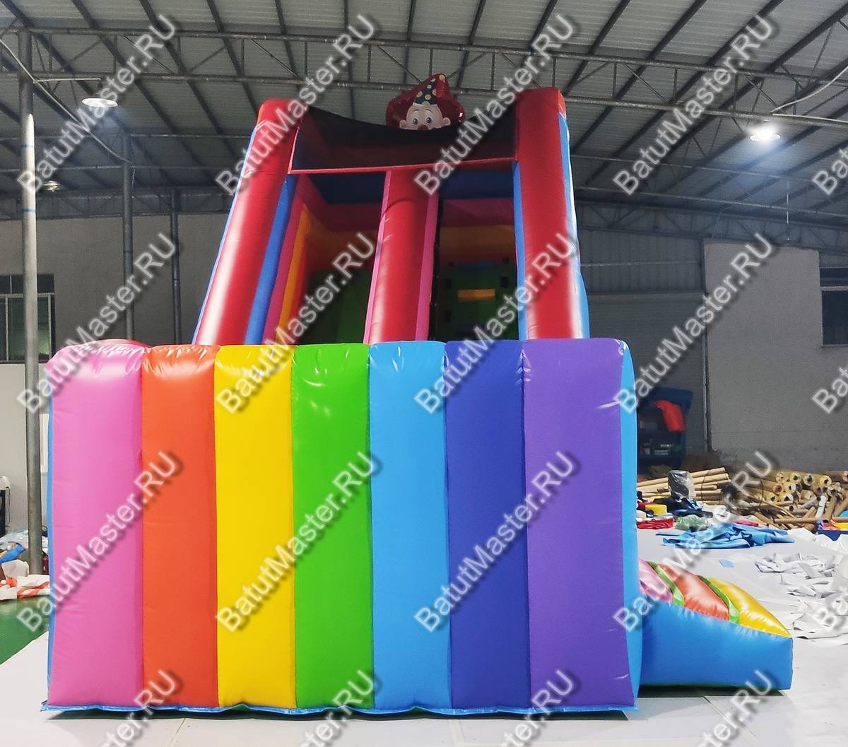 Надувной батут - горка станет любимым местом для прыжков и катания с горки у детей. Значительная арена для спуска захватывает дух. Задает тематику комплексу яркая окраска каждого модуля, словно костюм клоуна. Дети должны будут забираться наверх по мягким ступенькам и долго лететь вниз. Даже при неудачной попытке забраться на верх горки дети не получат травму, так как предусмотрена зона для падения, она полностью надувная и по бокам окружена высокими бортами. На протяжении всего спуска в качестве защиты от выпадения имеются также высокие борта. В зоне спуска имеется большое поле для безопасного торможения. Комплекс развивает выносливость, силу у детей, а также координацию движений.Коммерческий батут-горка дополнит детскую игровую зону в развлекательном центре или санатории. Может быть установлен на любую ровную поверхность и даже на песок. Выполнен из качественного ламинированного материала, не выгорает под солнечными лучами и не сжимается при низкой температуре. Простой и неприхотливый в уходе. Собирается и разбирается за считанные минуты. В комплекте имеется оборудование для сборки и эксплуатации, включая мощный насос. Предназначен для бизнеса.