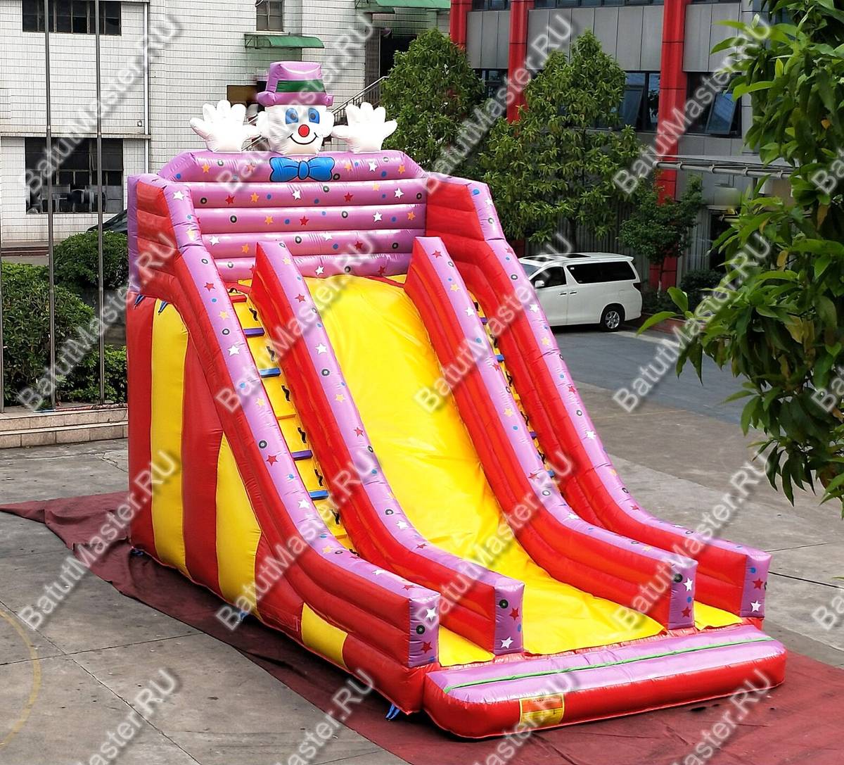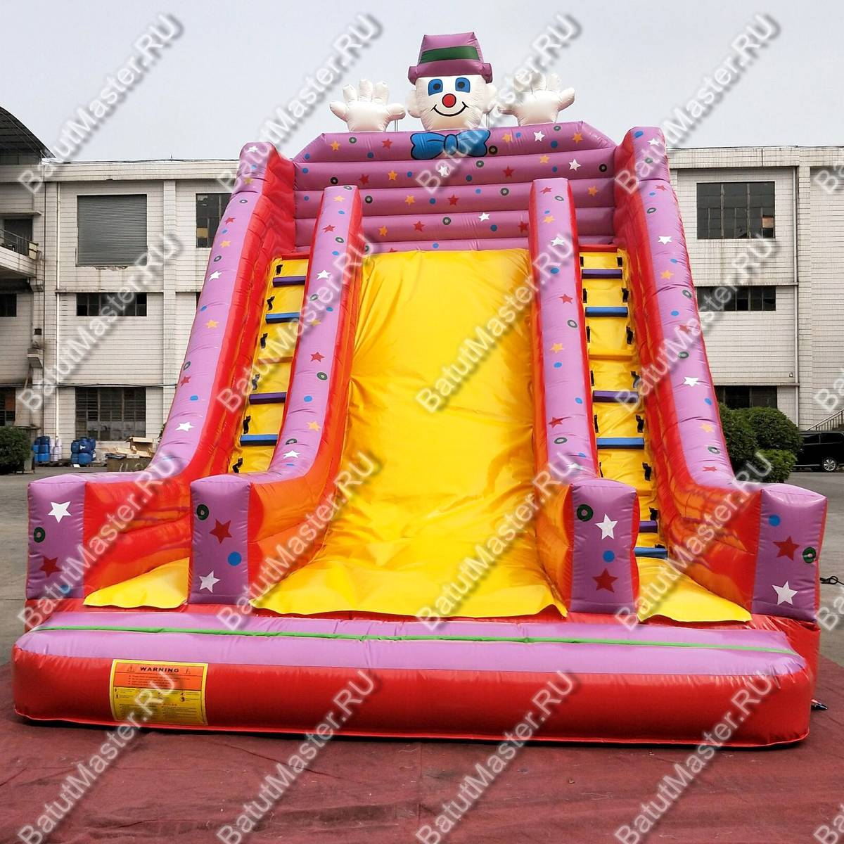 Большой поток клиентов - обеспечен, ведь симпатичный весёлый клоун и горка будут привлекать клиентов.