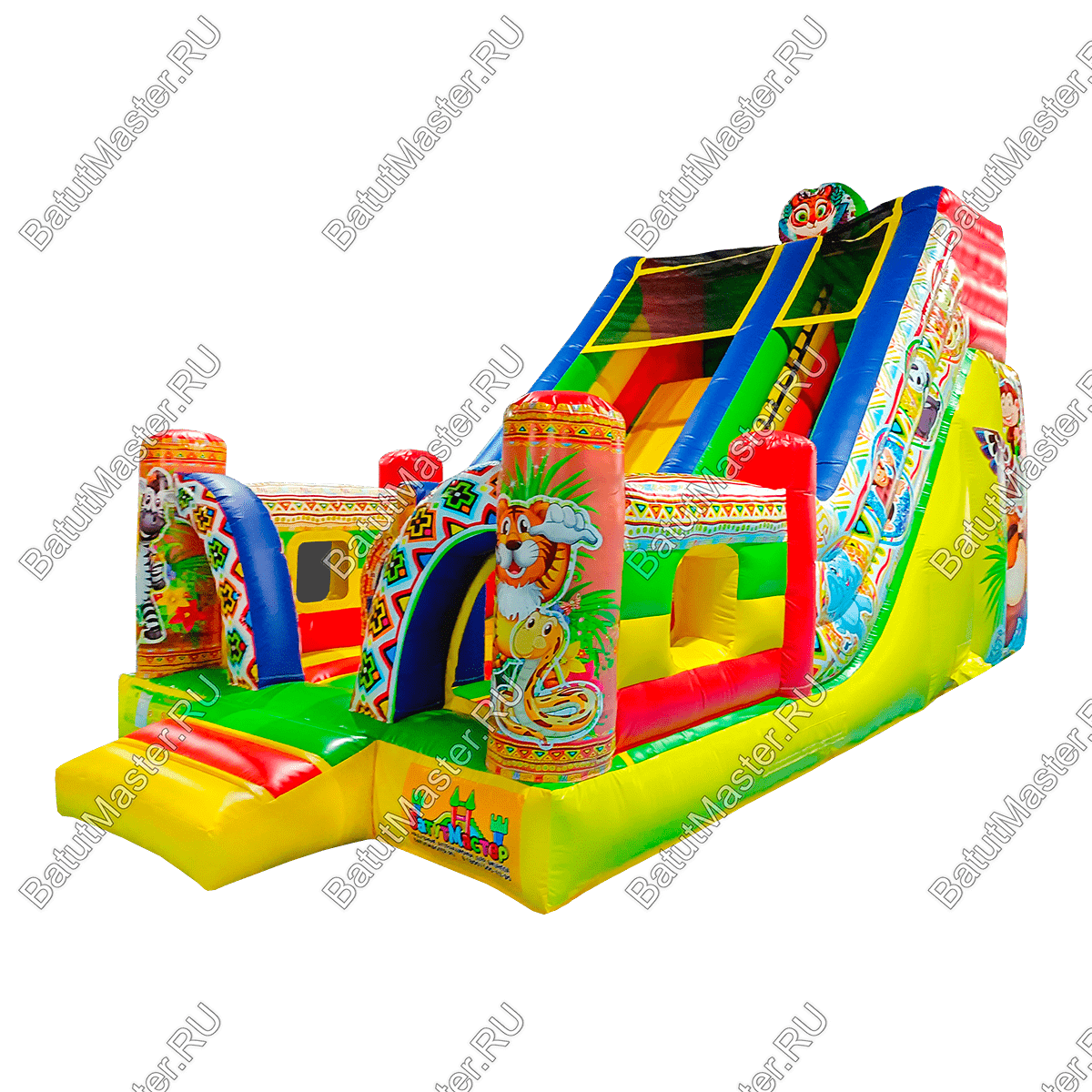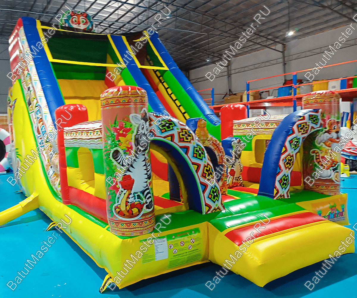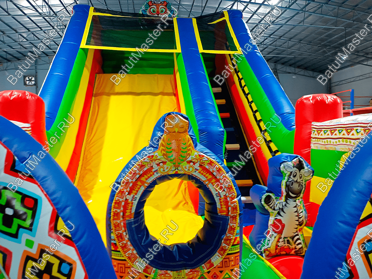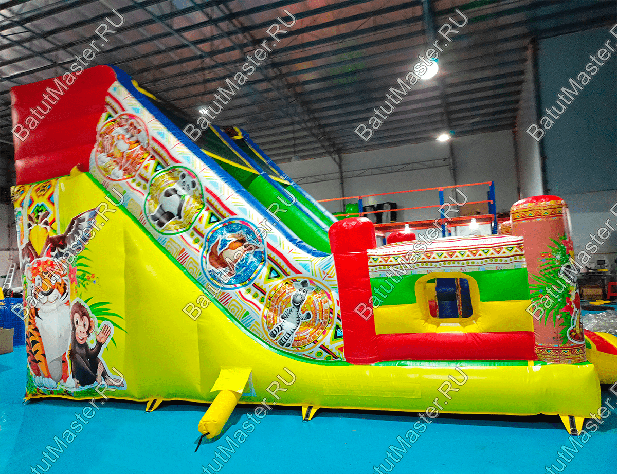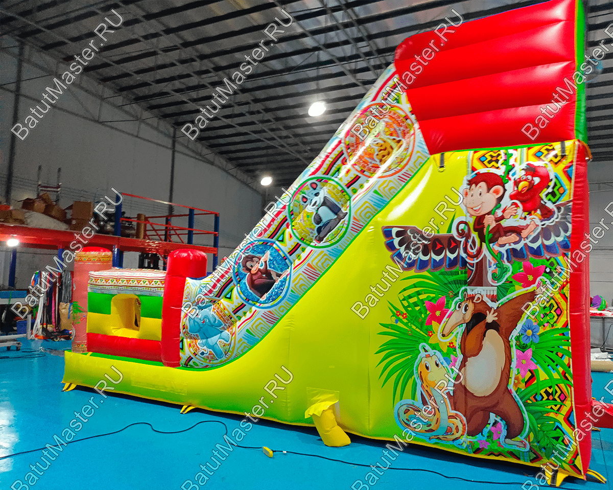 Коммерческая надувная горка возводится за считанные минуты и точно также быстро разбирается. Все, что для нее нужно это качественная воздуходувка и ровное пространство.