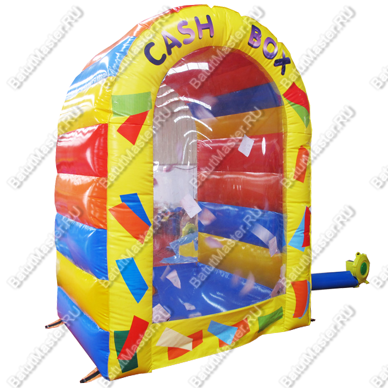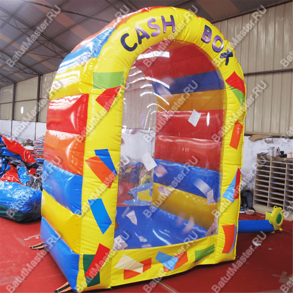 То, что сама кабинка надувная и изготовлена из ПВХ только усиливает веселье. А две стороны кабинки из прозрачной пленки обязательно заставят всех прохожих остановиться и с замиранием сердца порадоваться вместе с вашими посетителями. Правила игры вы можете устанавливать самостоятельно. Вот стандартный пример: как только посетитель заходит внутрь кабинки, включается воздушный насос, и деньги, которые раньше лежали на полу, поднимаются вверх. Дальше ход действий понятный – ваш клиент старается собрать как можно больше денег, но с пола поднимать купюры нельзя и нельзя прикасаться ими к стенкам кабины!