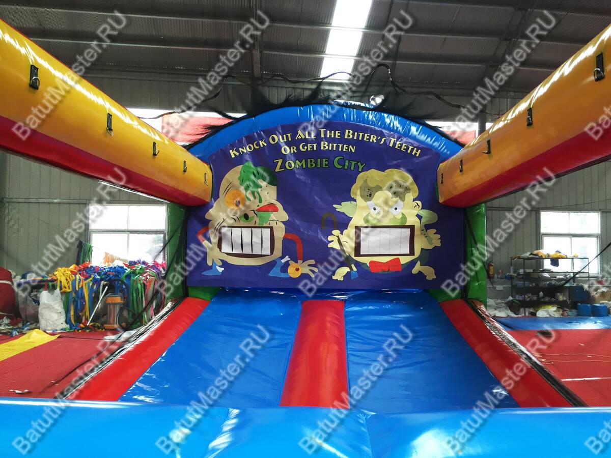 Если вы ищете необычный батут для коммерческого использования, обратите внимание на надувную игру «Зомби сити». Своим тематическим дизайном она разительно отличается от других развлекательных комплексов, и обязательно останется в памяти у посетителей. Дети по достоинству оценят возможность попрыгать в окружении мистических персонажей и вступить с ними в схватку.