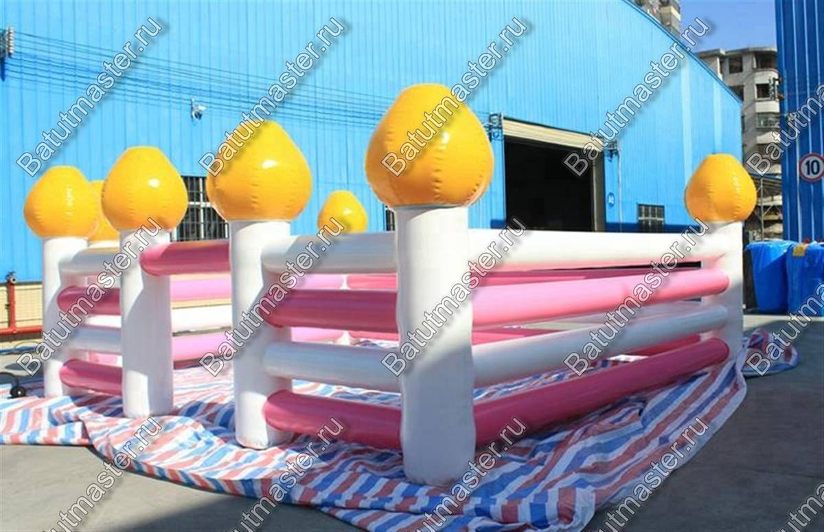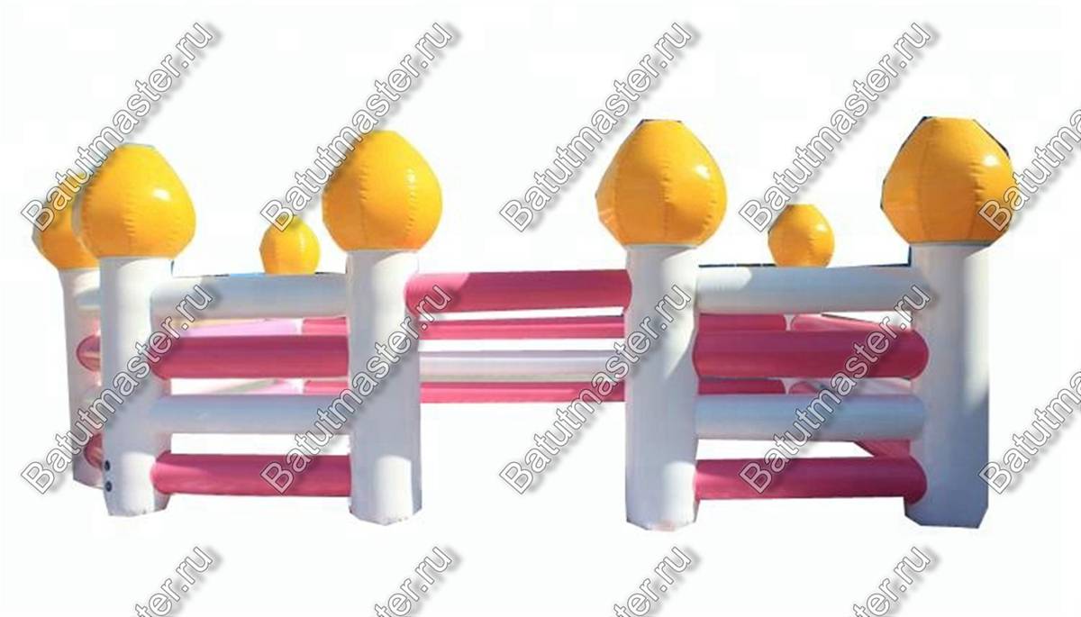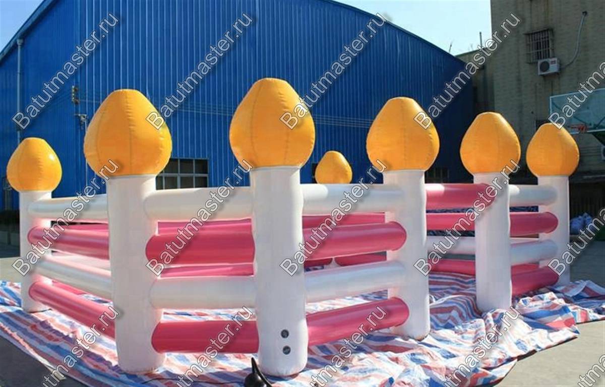 Она сделана в виде оригинального разноцветного заборчика, у которого имеются надувные жёлтые элементы. Полностью конструкцию ассоциируется с забором из сладких леденцов. Удачно подобранные цвета создают «вкусную» атмосферу, и детям непременно захочется побывать в «сладкой» комнате.