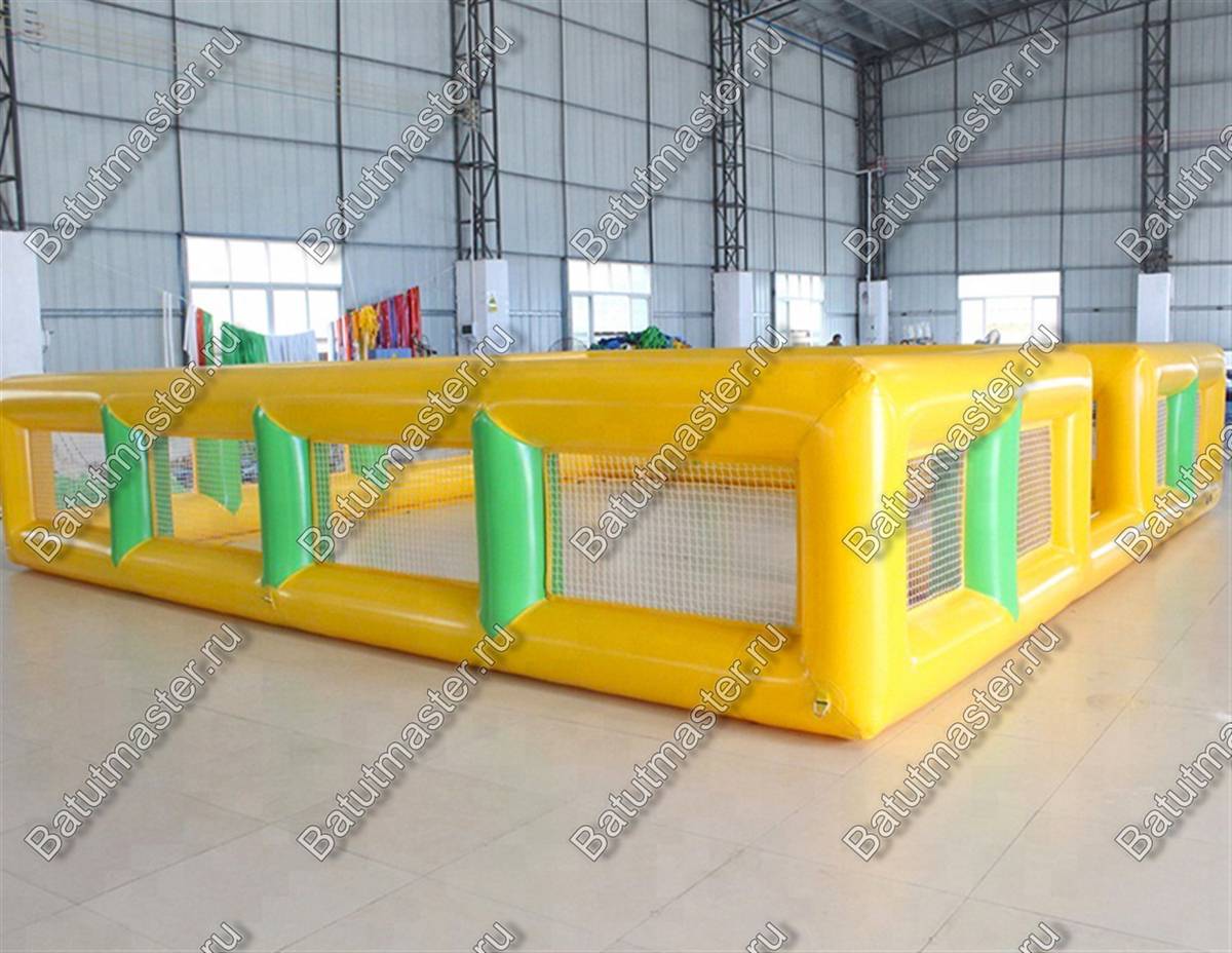 Надувная игровая комната сделана из плотного поливинилхлорида и отлично противостоит различным ударам. Стоит отметить, что все материалы экологически чистые и не токсичные. Конструкция не только полезная, но и безопасная, так как состоит только из надувных бортов и оснований. Между колоннами натянута прочная сетка.