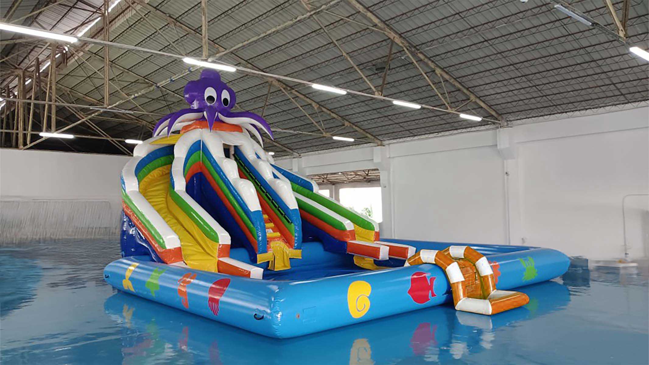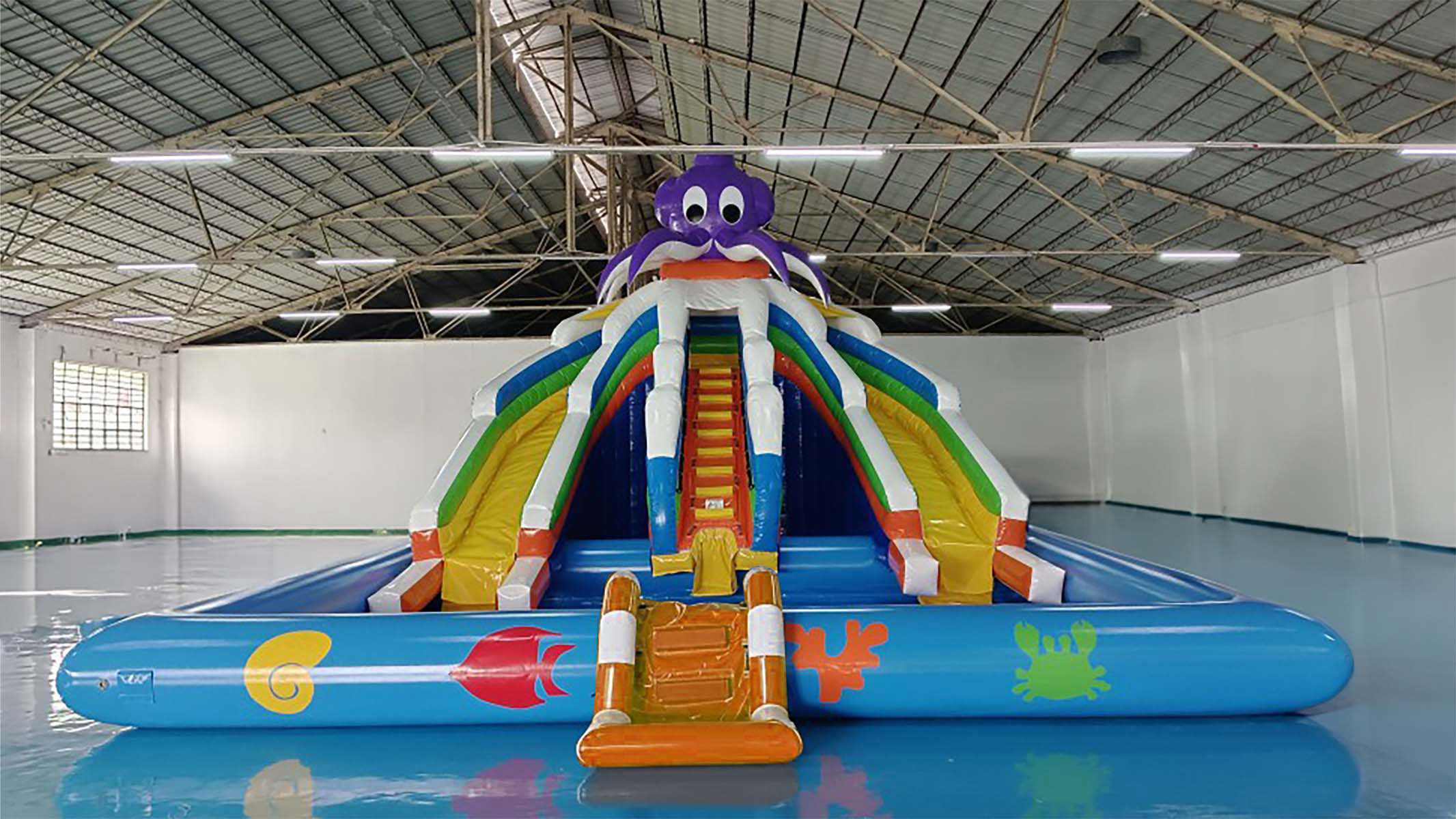 Одним из ключевых достоинств данной надувной лестницы является её универсальность. Она может быть использована не только в бассейнах, но и на различных водных аттракционах, включая аквапарки, надувные островки, водные горки и другие элементы, требующие лёгкого и безопасного подъёма или спуска. Например, лестница идеально подходит для использования на плавучих платформах, что делает её отличным инструментом для отдыха на воде или вблизи водоёмов.