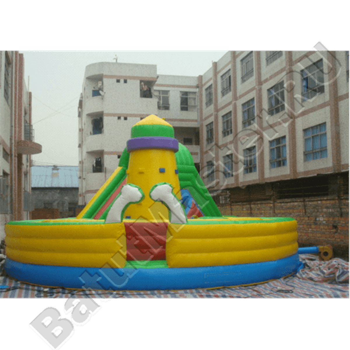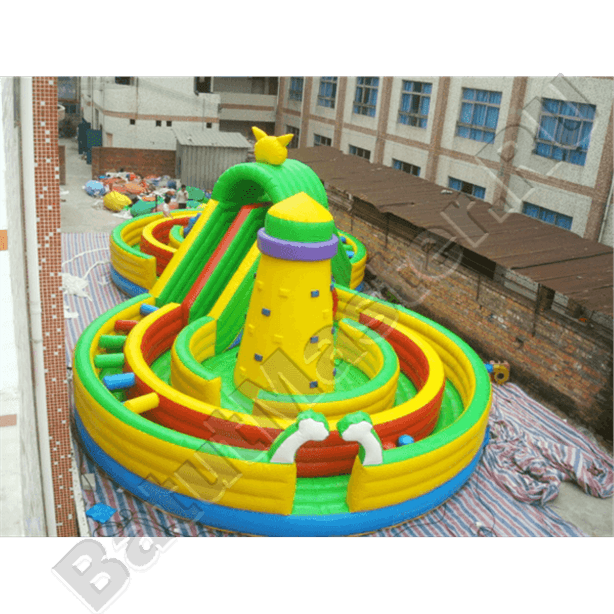 Надувные преграды встречаются почти повсюду, выступы можно применить не только в качестве границ безопасности, но и как отличная площадь для прыжков. Одно кольцо оснащено синей горкой в виде хвоста дракона, а второе кольцо имеет в центре мягкую пирамиду, чтобы рассказать детям, что такое альпинизм.