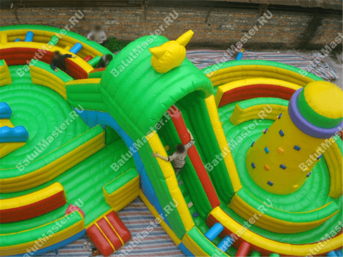 Это настоящий мега надувной городок с развлечениями в виде веселого батута, закрученного в восьмерку. В целом он представляет собой огромный лабиринт, где поместятся не только дети, но и тинейджеры или даже взрослые люди. Такая мягкая площадка отлично впишется в число «инструментов» для занятий в спортивных учреждениях. Но сам процесс физического воспитания для ребенка будет незаметен, он будет выглядеть, как игра.