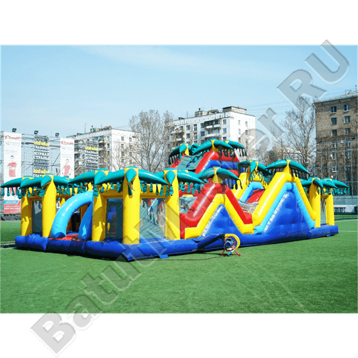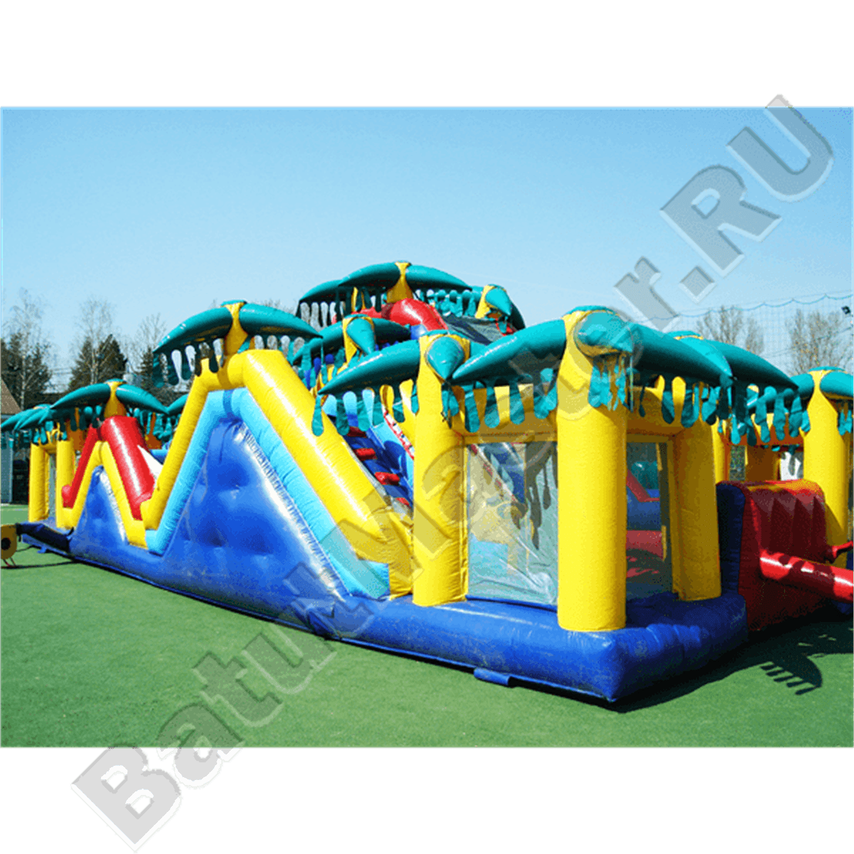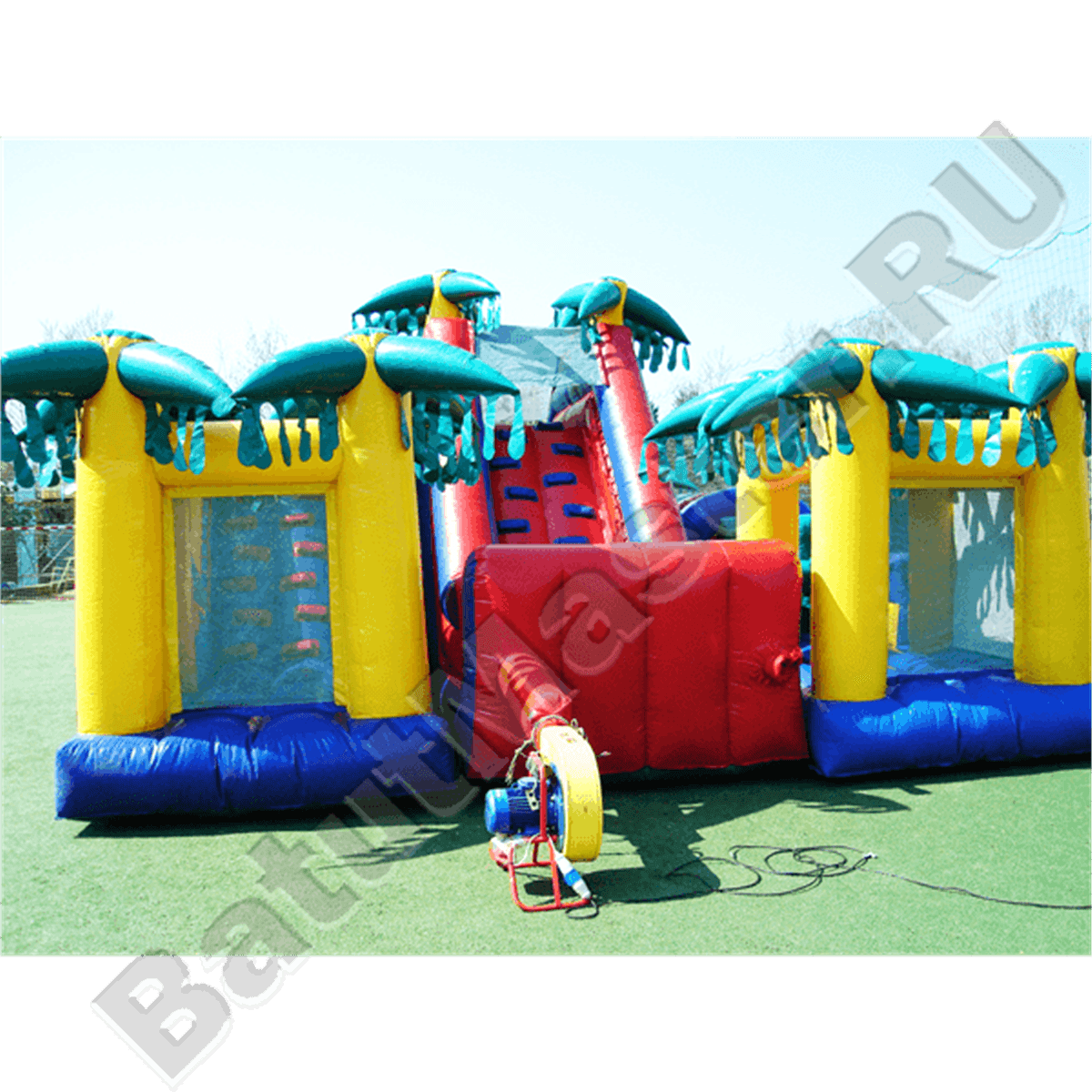Целый воздушный город джунглей собрался на одной мягкой и красочной площадке, где дизайн не просто удивляет, а завораживает. Такого сочетания множества горок, подъемов, туннелей редко можно встретить.Большой батут с высокими пальмами посетители увидят с разных сторон парка и обязательно захотят побывать на небольшом африканском островке. Значительная площадь позволяет вместить в себе огромное количество гостей и чем их будет больше, тем интереснее в нем будет находиться. Красочный батут обязательно оправдает финансовые ожидания своего владельца.