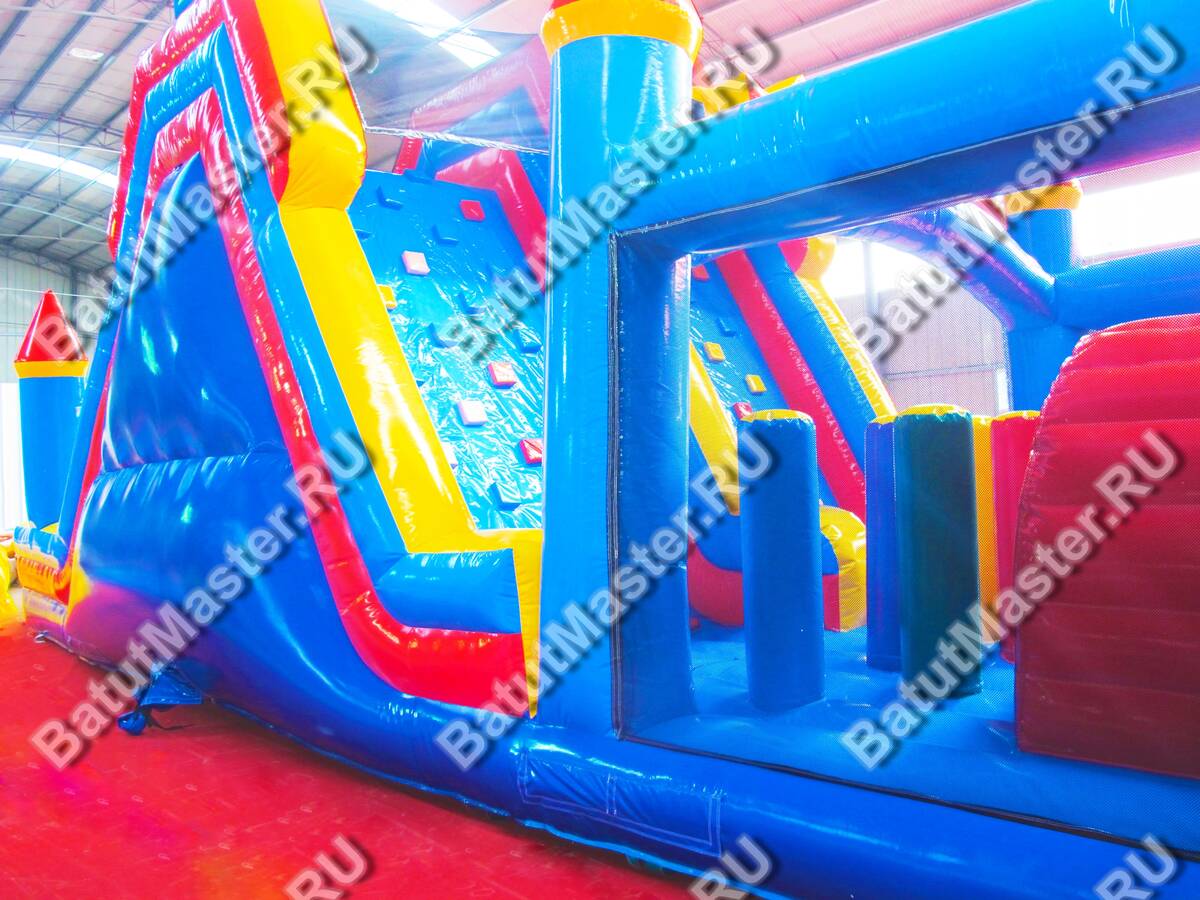 Современная, интересная арена для невероятных приключений и состязаний ждет юных первооткрывателей. Здесь все кругом познавательно и увлекательно. Комплекс состоит из множества интересных модулей, которые рассчитаны на то, чтобы дети преодолевали их, играли и прыгали. Надувная полоса препятствий состоит из тоннелей, вертикальных модулей, горок и подъемов. Прямо на входе дети увидят масштабы комплекса и захотят проверить свои силы. Все это напоминает сказочный мир, где все кругом призывает к веселью и приключениям. Надувной батут выполнен в ярких красках, за счет чего он будет заметен издалека и создаст дополнительное настроение. Сверху батута имеются надувные башенки, все как у настоящего замка. Мягкая надувная основа позволяет бегать и прыгать сколько угодно. Коммерческий батут с множеством интересных локаций может быть установлен как самостоятельный парк развлечений. Высококачественный материал разработан специально для использования детьми. Он не токсичный, простой и неприхотливый в уходе. Не выгорает на солнце и не сжимается при минусовой температуре. В нем нет ни одного жесткого элемента – все вокруг надувное и мягкое. Предназначен для бизнеса.