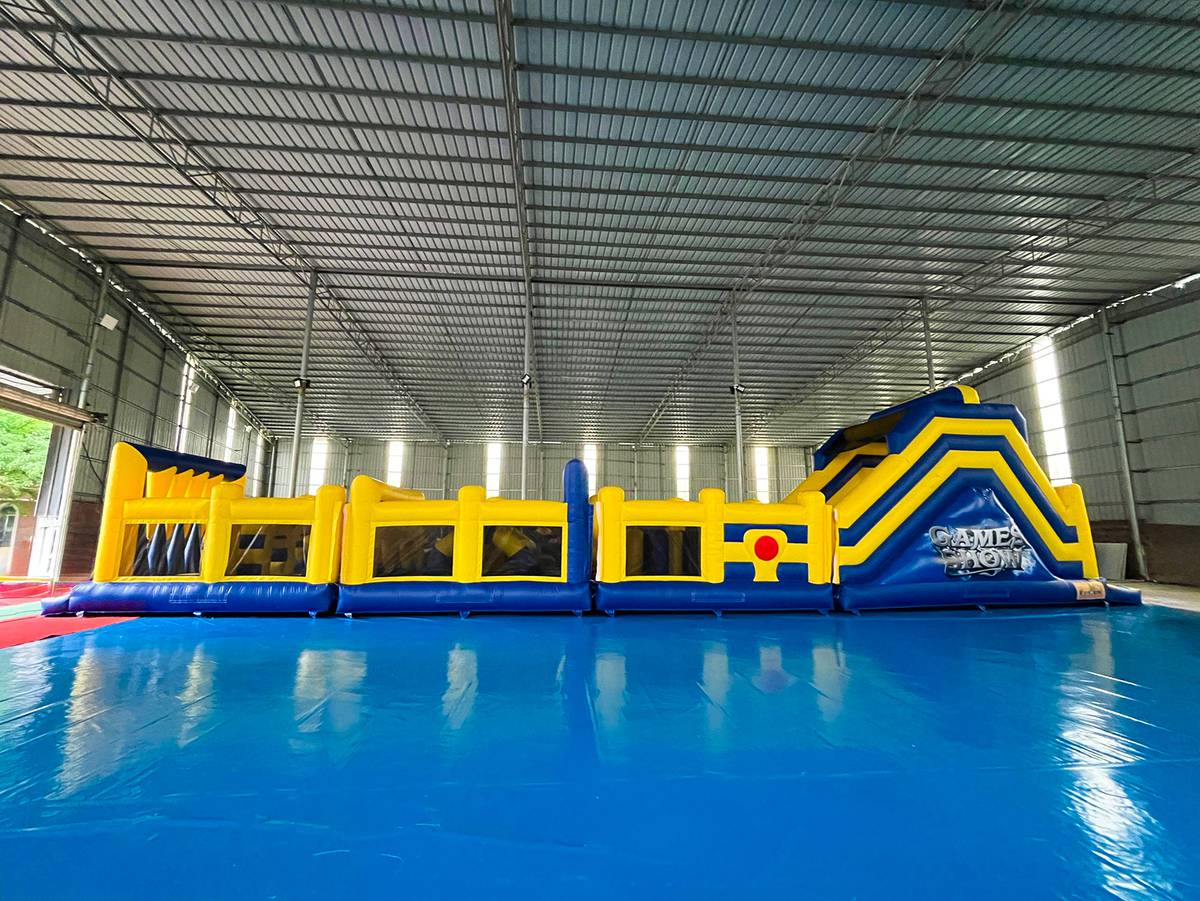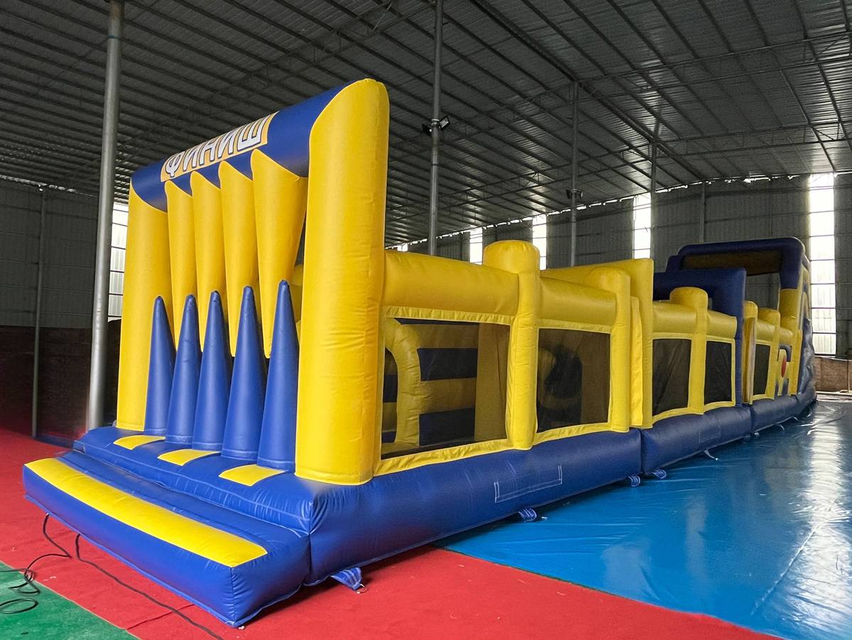 Надувная полоса препятствий «Весёлые старты» — это полноформатный коммерческий аттракцион, который объединяет в себе спортивный азарт, игровую активность и высокую доходность. Аттракцион состоит из 4 модульных секций и занимает 70 квадратных метров пространства. Размеры 20 метров в длину, 3.5 в ширину и 4.5 в высоту делают его универсальным решением как для улицы, так и для крытых площадок.