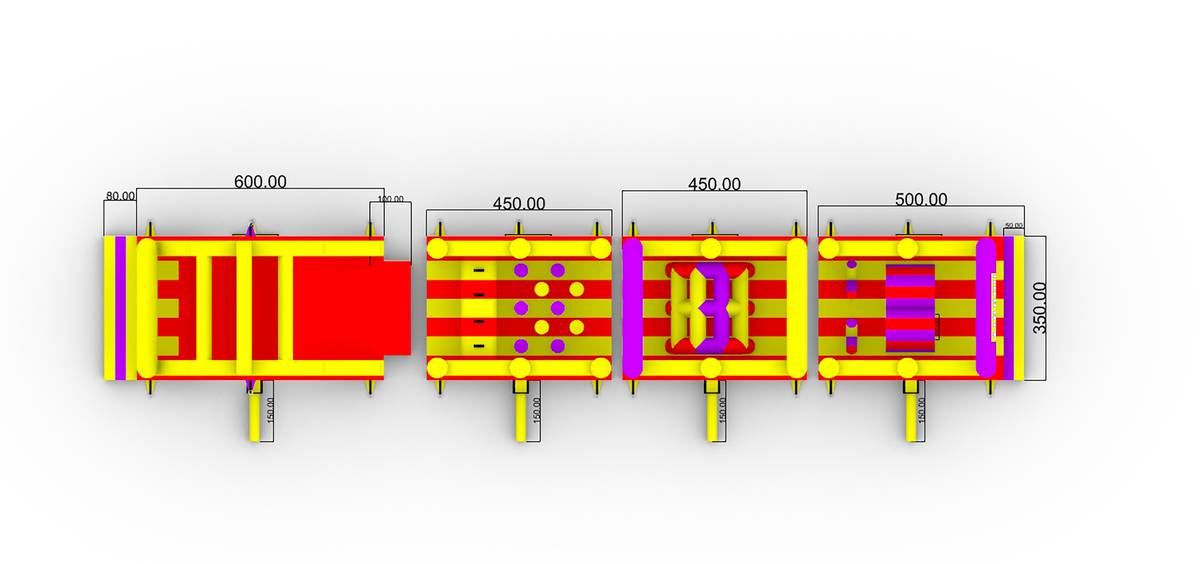 Надувная полоса препятствий “Веселые старты”, 4 отдельных блока, 20*3,5*4,5 м.