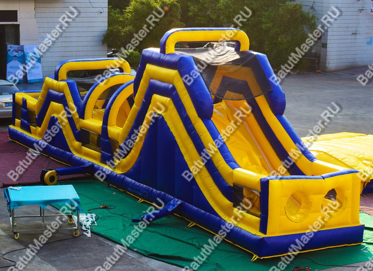 Надувная полоса препятствий для бизнеса выполнена из качественного материала пвх, который стоят под открытыми лучами солнца не поменяет цвет. Рассчитан на длительную эксплуатацию.