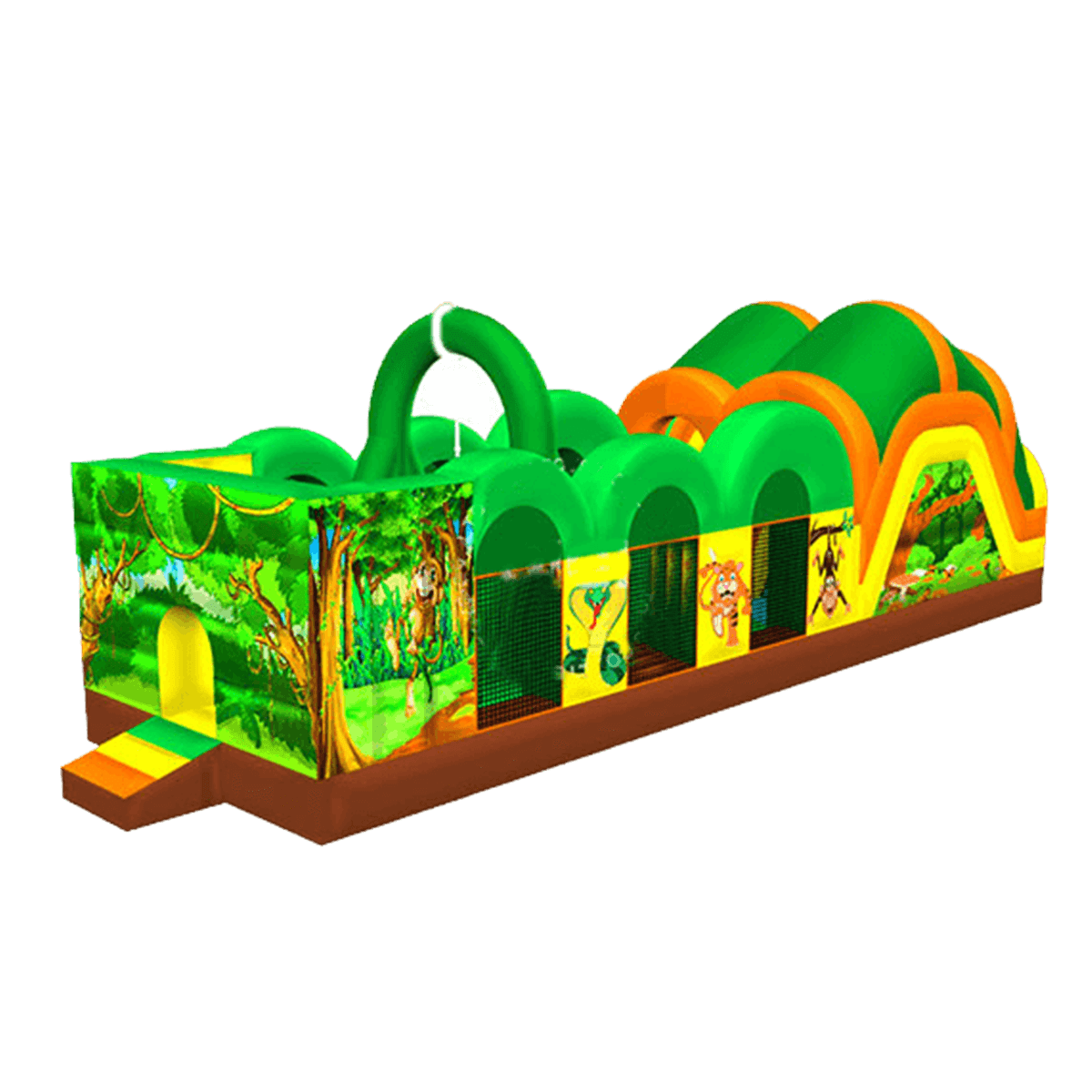 Яркость и красочность этого аттракциона впечатляет даже взрослых. Огромная площадка впишется в любой пейзаж, даже на любой городской площадки мегаполиса и станет настоящим украшением. Внешние стороны батута издалека даже можно спутать с настоящей растительностью африканских джунглей, поэтому владелец не будет испытывать дефицит посетителей.