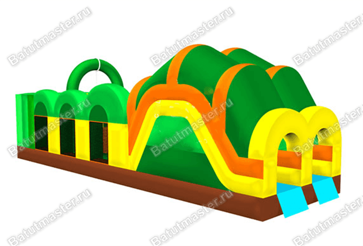 После того, как ребенок войдет внутрь через арку, перед ним предстанут игровые фигуры в виде огромного круга и небольших разноцветных пеньков на большом месте для прыжков и для бега. Дальше придется преодолеть препятствия в виде подъемов на горки, он выполнен в виде сетчатой лестницы и вот вы уже на самой вершине и готовы к увлекательному спуску. Сами горки полностью закрытые и своей конструкцией образуют сразу 2 тоннеля, выходящие прямо на открытую местность. Сразу после спуска ребенок может вернуться в начало аттракцион и попробовать пройти весь маршрут заново. Боковые стороны имеют сетчатые окна в виде арок, которые позволяют родителям и детям не терять визуальный контроль.