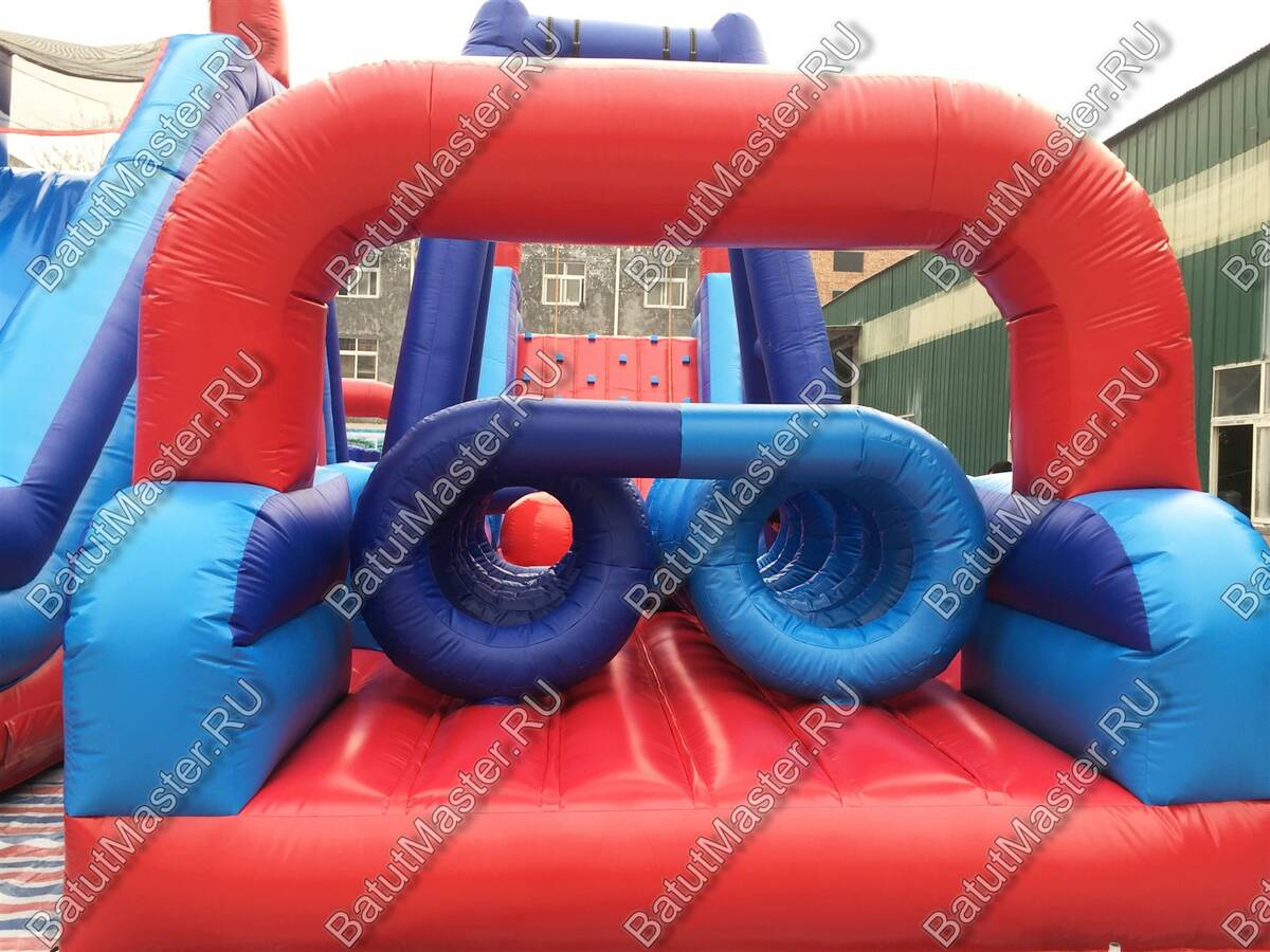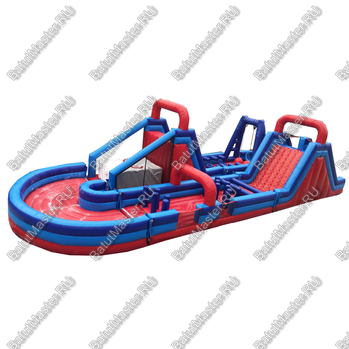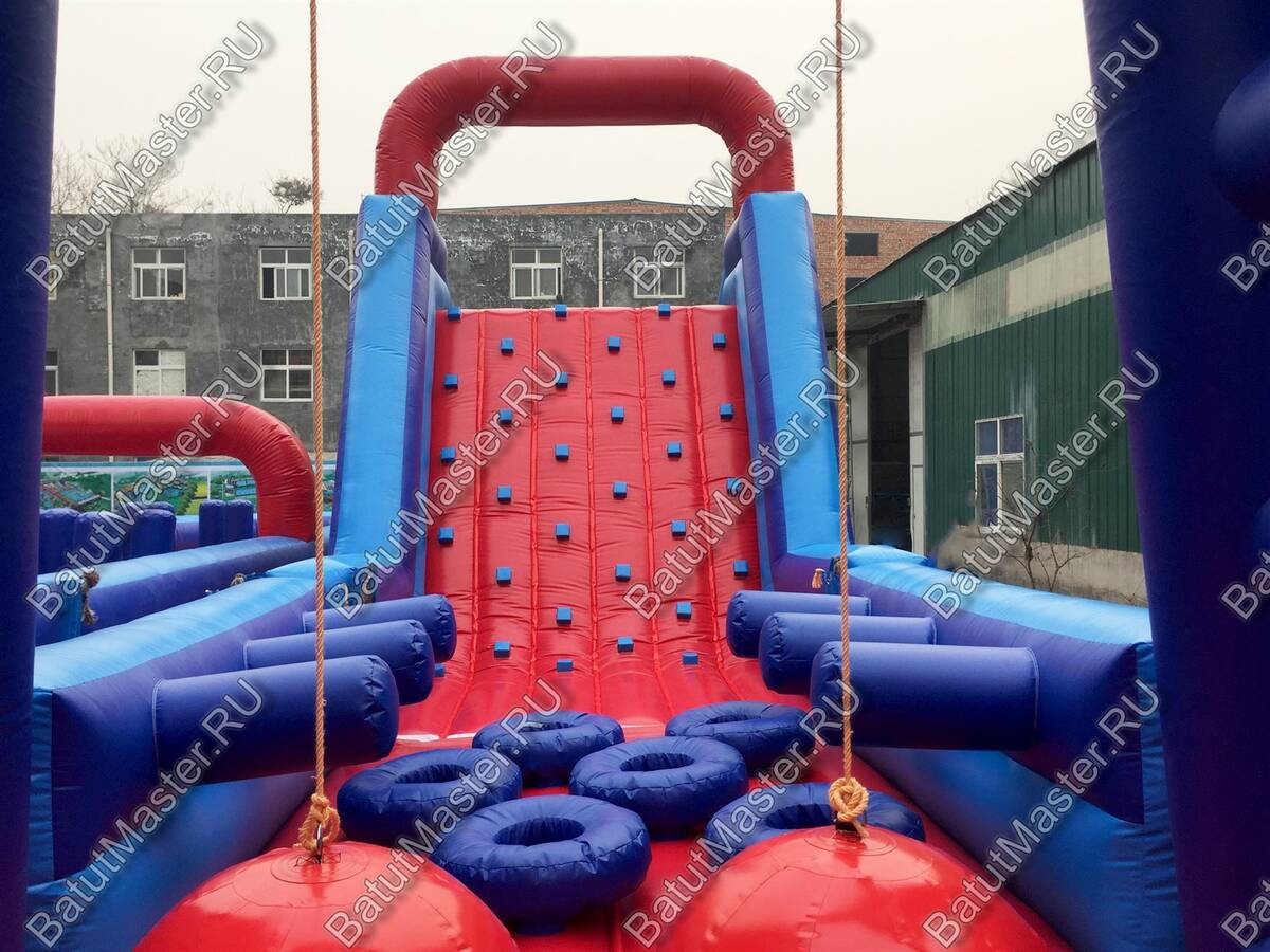 Участникам для начала нужно пробежаться между висящими грушами, чтобы пройти по надувным спасательным кругам, только их ногами нужно попасть в отверстие. Далее им необходимо будет залезть на скалодром. Но не придётся спускаться с него, а придётся прыгать на большую мягкую поверхность. Помимо этих препятствий, на пути встретятся и небольшие тоннели, вертикальные и горизонтальные батутные детали, а также крупная и прочная сетка, по которой нужно будет забраться наверх.