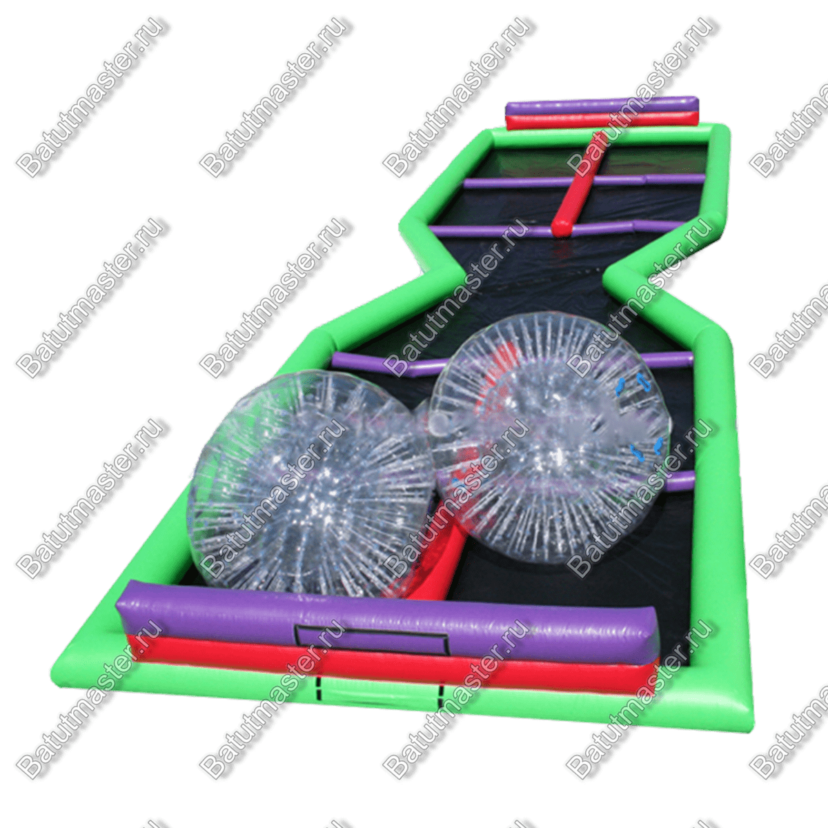 Надувная трасса для зорба – это необычная конструкция, которая позволит организовать интересное времяпровождение в шарах. Тем, кто организует подобные развлечения такое изделие будет просто необходимо. Оно привлечет больше посетителей, что положительно скажется на ведении бизнеса. Атрибут представляет собой траектории, разделенную на различные препятствия в виде воздушных перекладин, расположенных по вертикали и горизонтали. Такое изделие отлично подходит для того, чтобы организовывать соревнования и проводить эстафеты. Суть использования надувной трассы ля зорба состоит в том, что, прежде всего, она наполняется водой, два человека помещаются в два шара и начинают движение. Одному из них необходимо дойти до средины первым, чтобы пройти далее, так как проход в этом месте предназначен только для одного. Это разовьет море азарта и поднимет настроение.