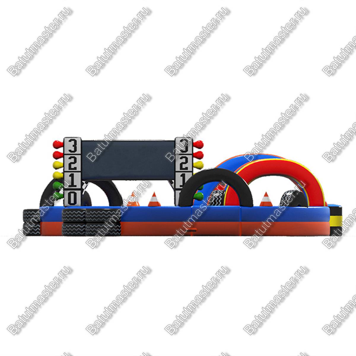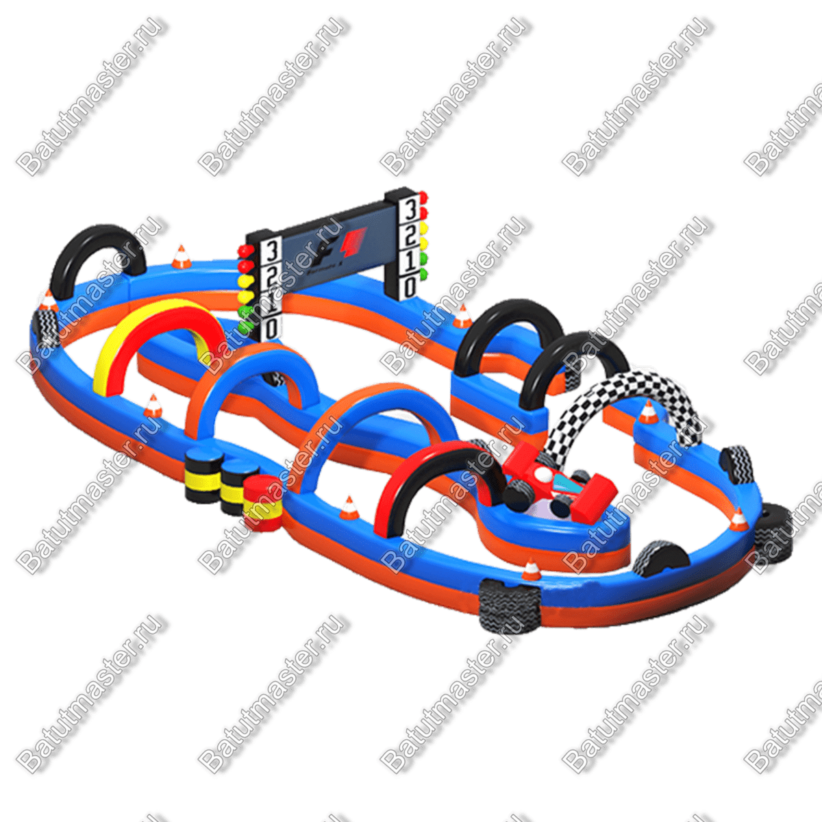 Надувная коммерческая трасса «Гран-При» подойдет как нельзя лучше для организации детских заездов на электромобилях. Она выполнена в ярких, красочных тонах, а также на протяжении всего пути дети могут наблюдать имитированный светофор. Многочисленные арки делают такое изделие привлекательным и более эффектным.