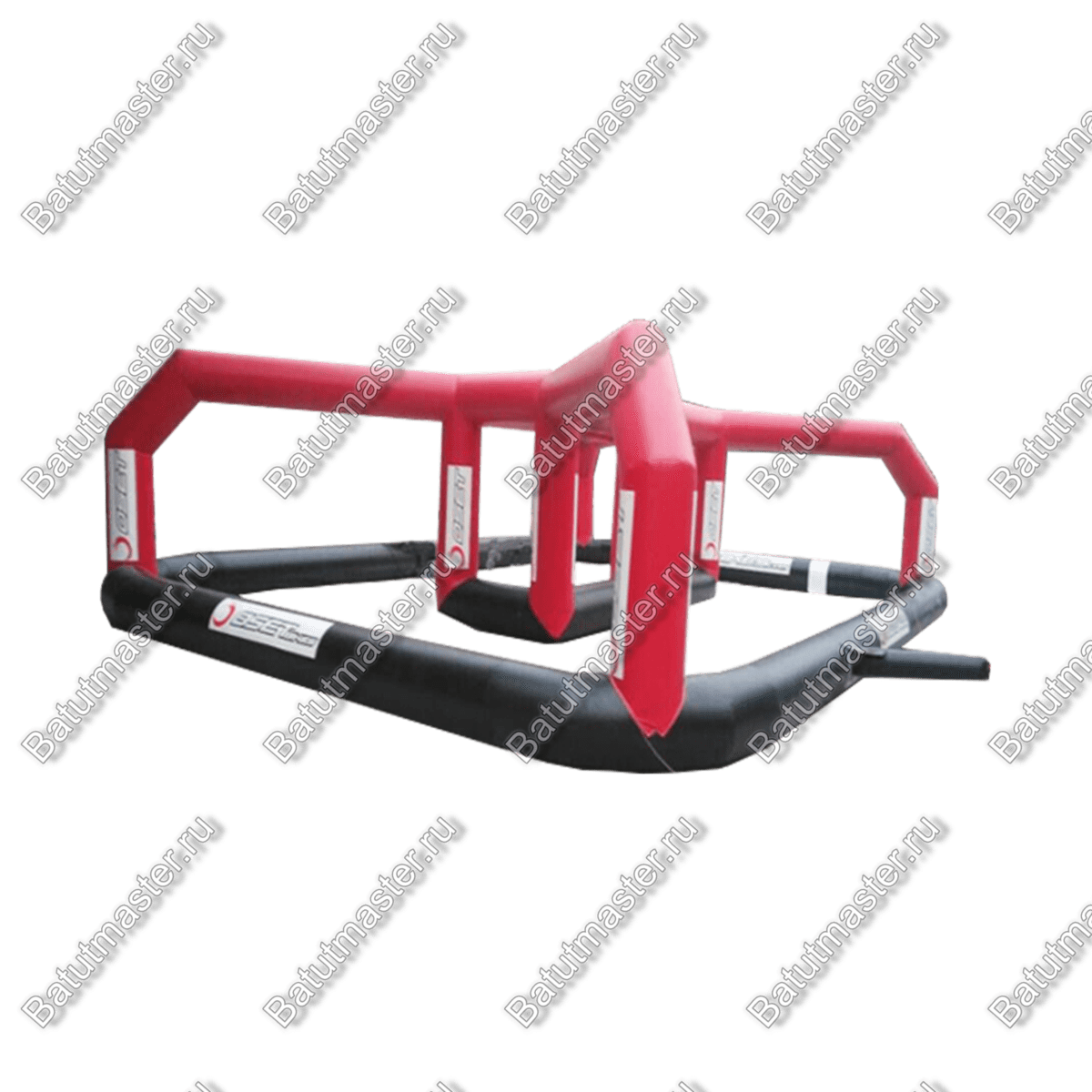 Надувная трасса выполнена в черном и красном цветах, а это основные цвета спортивных гонок. Она имеет многочисленные арки и развороты. Такая конструкция не выгорает на солнце, и долгое время сохраняет свой первозданный вид.