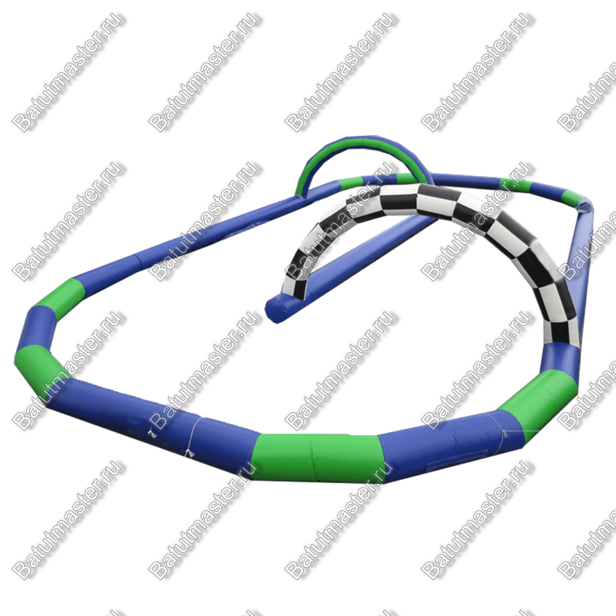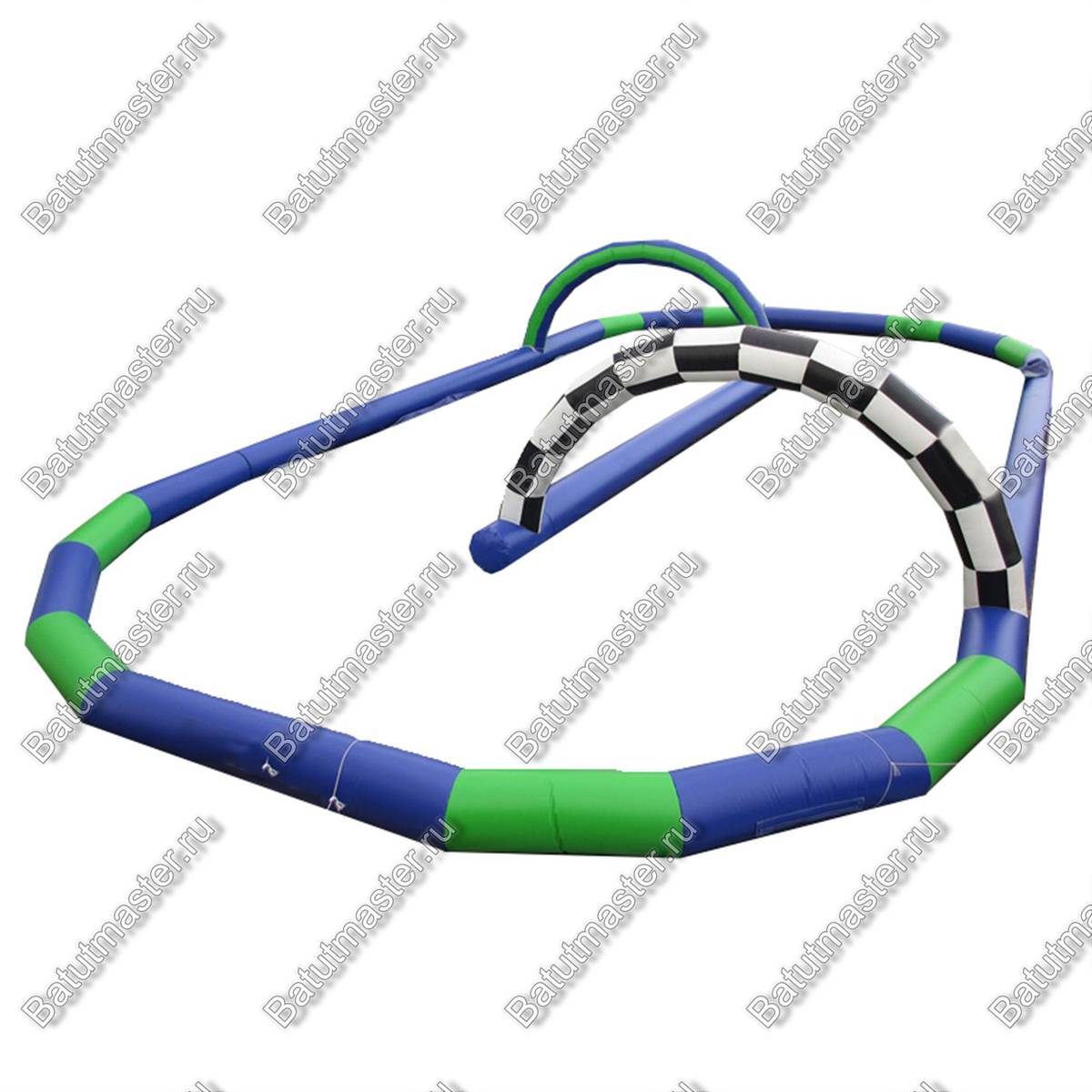 Надувная трасса сделана из прочного поливинилхлорида и остается цельной и неиспорченной, после того как в нее врежется машинка. Разноцветная окраска, имитирующая настоящую гоночную траекторию, делает конструкцию максимально реалистичной. Воздушные арки являются настоящим украшением атрибута для гонок.
