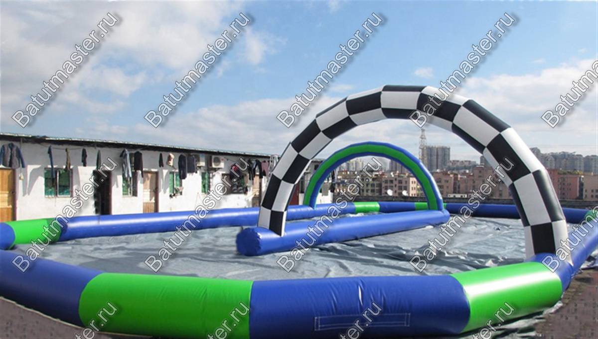 Надувная трасса устанавливается как на открытом воздухе, так и в закрытом помещении. Все, что нужно обеспечить для ее функционирования, это подачу электричества и ровную поверхность. Владельцам таких аттракционов стоит задуматься о приобретении данной конструкции, чтобы организовать гонки максимально безопасно.