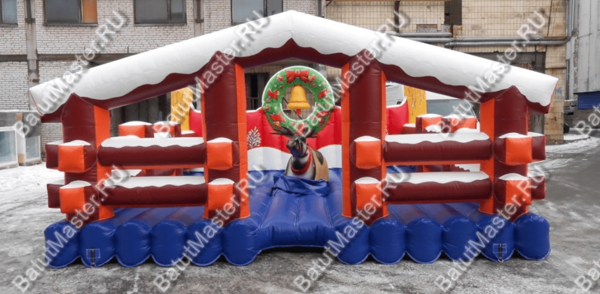 Сколько же много тематических аксессуаров и красок таится в этом аттракционе. Само основание сделано в виде стойла, на крыше которого спокойно лежит снег. Внутри сразу же в глаза бросается интересный и оригинальный олень, который выступает в роли механического бычка. Именно на него нужно будет сесть посетителям, чтобы покачаться. Сзади можно увидеть рождественский венок и ярко-жёлтый колокольчик, которые и задают тон празднику.