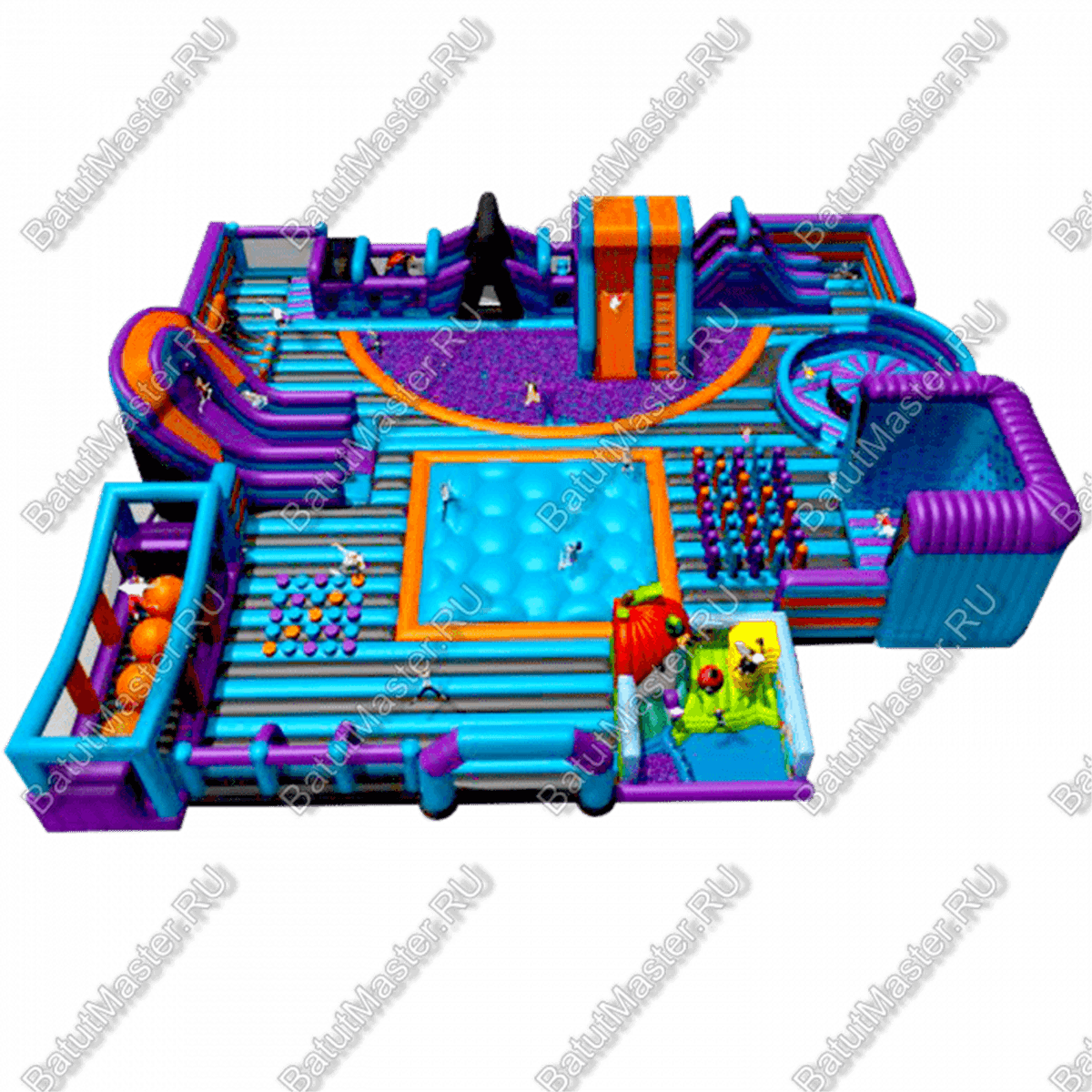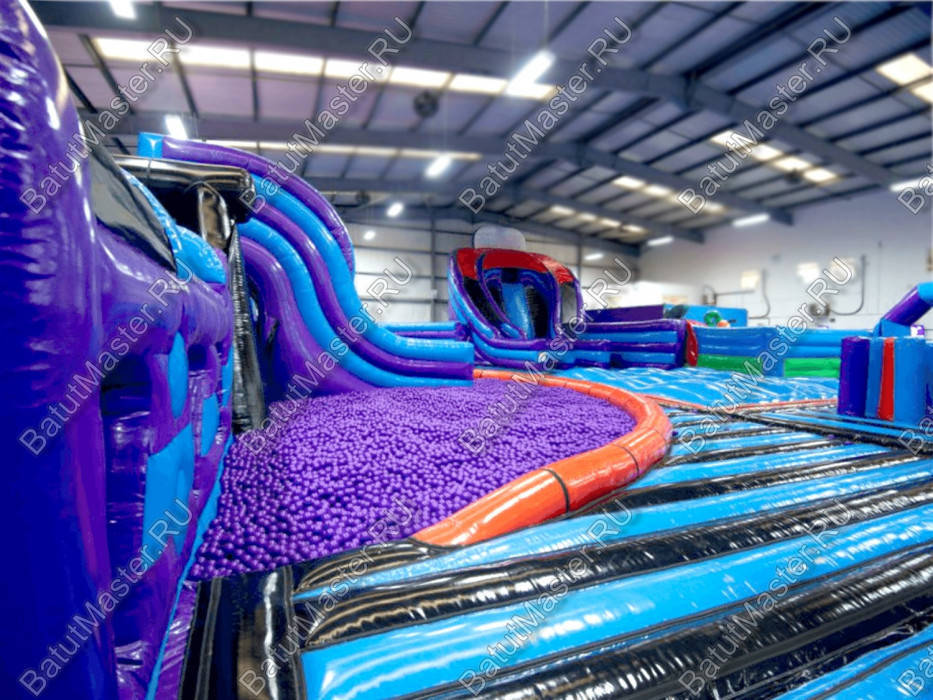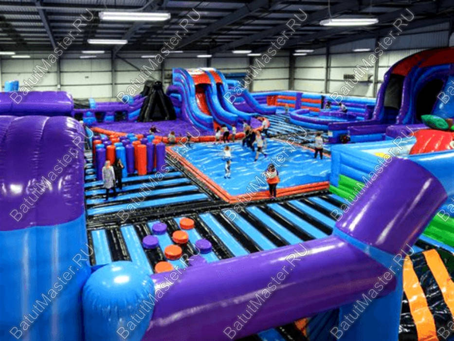 Невероятных масштабов игровой комплекс напоминает целый город развлечений для детей. Чего здесь только нет! Горки, батуты, бассейн с шариками, различные игровые зоны с самым интересным наполнением. Здесь есть даже три стены для лазания, напоминающие скалодром. Надувной батут сделан таким образом, чтобы дети, отталкиваясь, прыгали еще выше. Резвиться можно вместе с родителями¶Особенно стоит отметить то, что в этом батутном мегаполисе предусмотрена зона для самых маленьких непосед. В нее включен сухой бассейн, домик, сказочные персонажи в виде насекомых, а самое главное – большое поле для прыжков, ведь это так нравится детям. ¶Каждая из локаций грамотно зонирована высокими надувными бортами, поэтому дети, играя, не будут мешать друг другу и станут перемещаться из одной зоны в другую. Комплекс защищен со всех сторон надувными бортами и частично прочной сеткой.¶Коммерческий батут выполнен из качественного, нетоксичного материала. Занимает большую площадь и может стать полноценным центром развлечений у детей разного возраста. Предназначен для бизнеса. Преимущественно, местом его установки должно стать закрытое помещение, к примеру, в торгово-развлекательном центре.