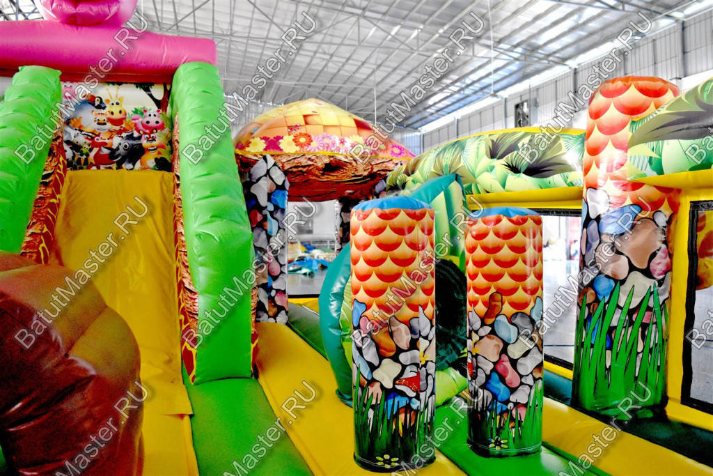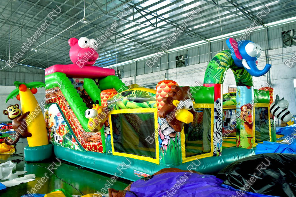 Надувной батут «Бегемотик» - это яркий и тематичный комплекс, который без сомнения приведет детей в восторг и привлечет их внимание. Комплекс оснащен тоннелем, по которому так любят пробираться дети, надувными кольцами, горкой и подъемом. Упругое надувное дно позволит подлетать еще выше. Здесь дети смогут кувыркаться, бегать и прыгать. Настоящим украшением батута являются надувные животные тропиков и деревья. Все выглядит максимально реалистично и притягивает взгляд. Коммерческий батут «Бегемотик» позволяет детям не только общаться и веселиться, но еще и развивает координацию движений, ловкость и в целом улучшает физические показатели у детей в период развития, что является важным.