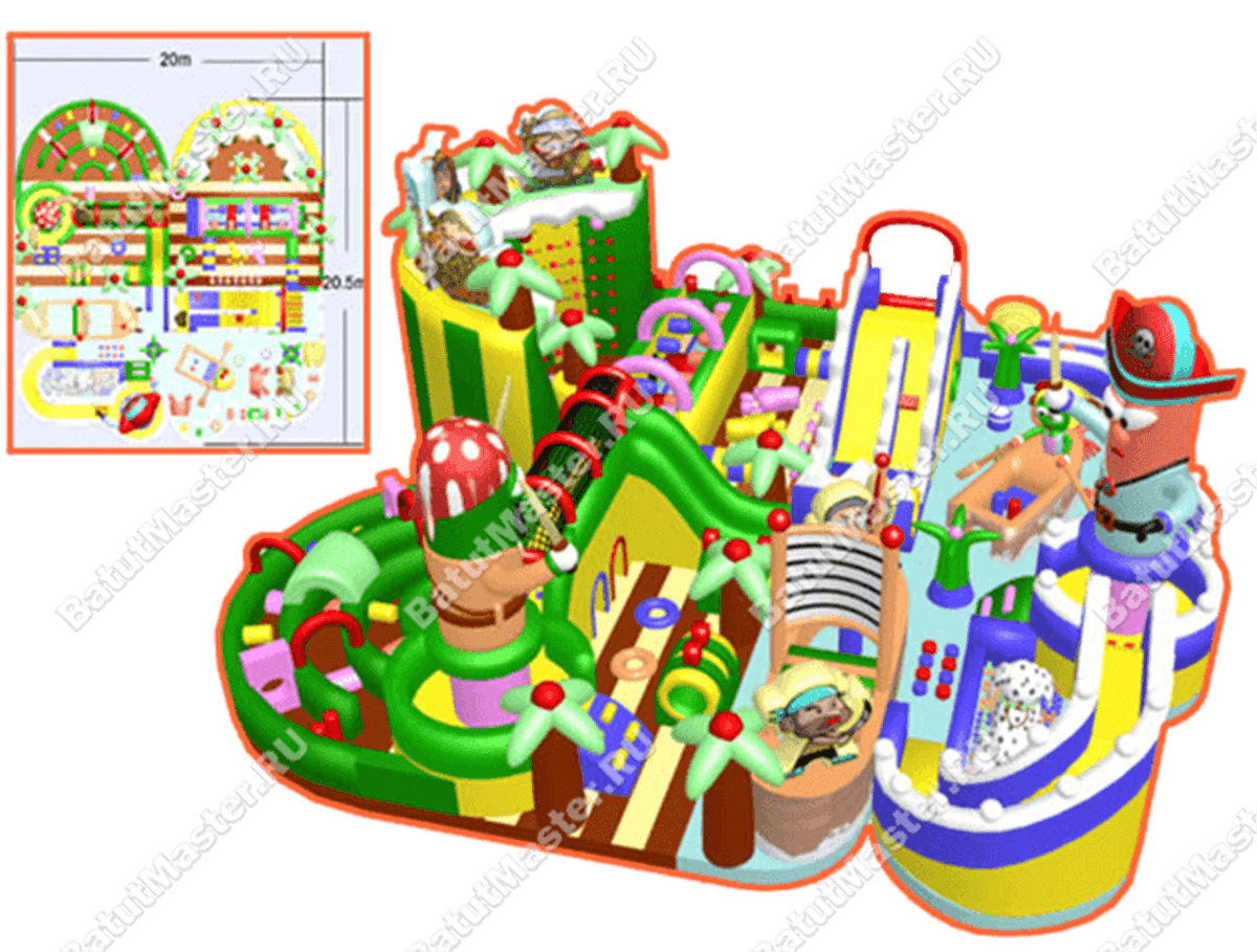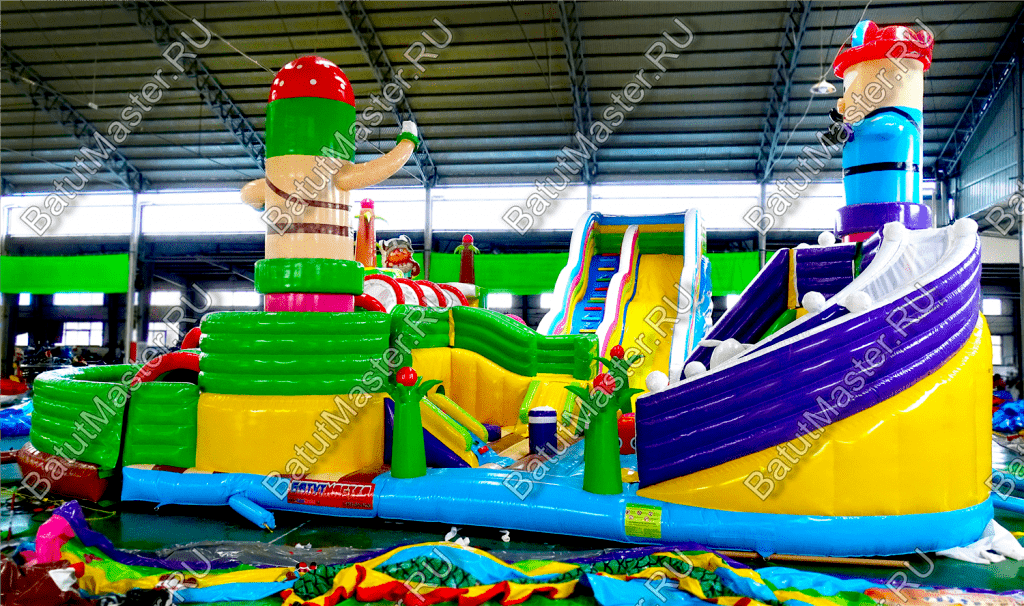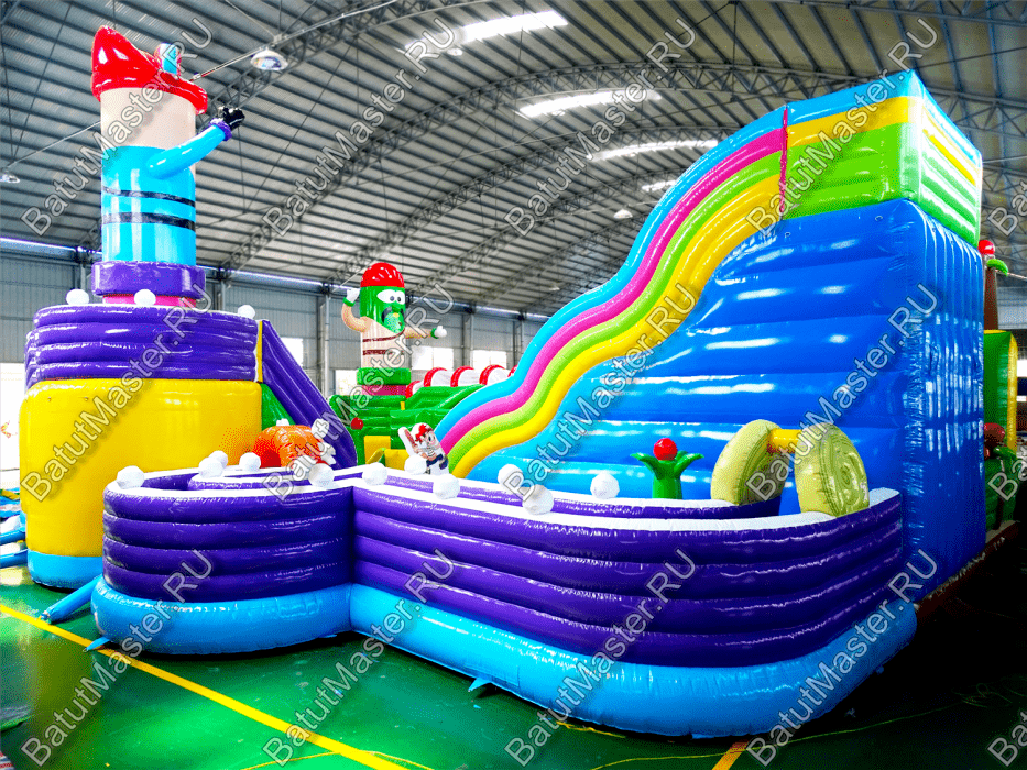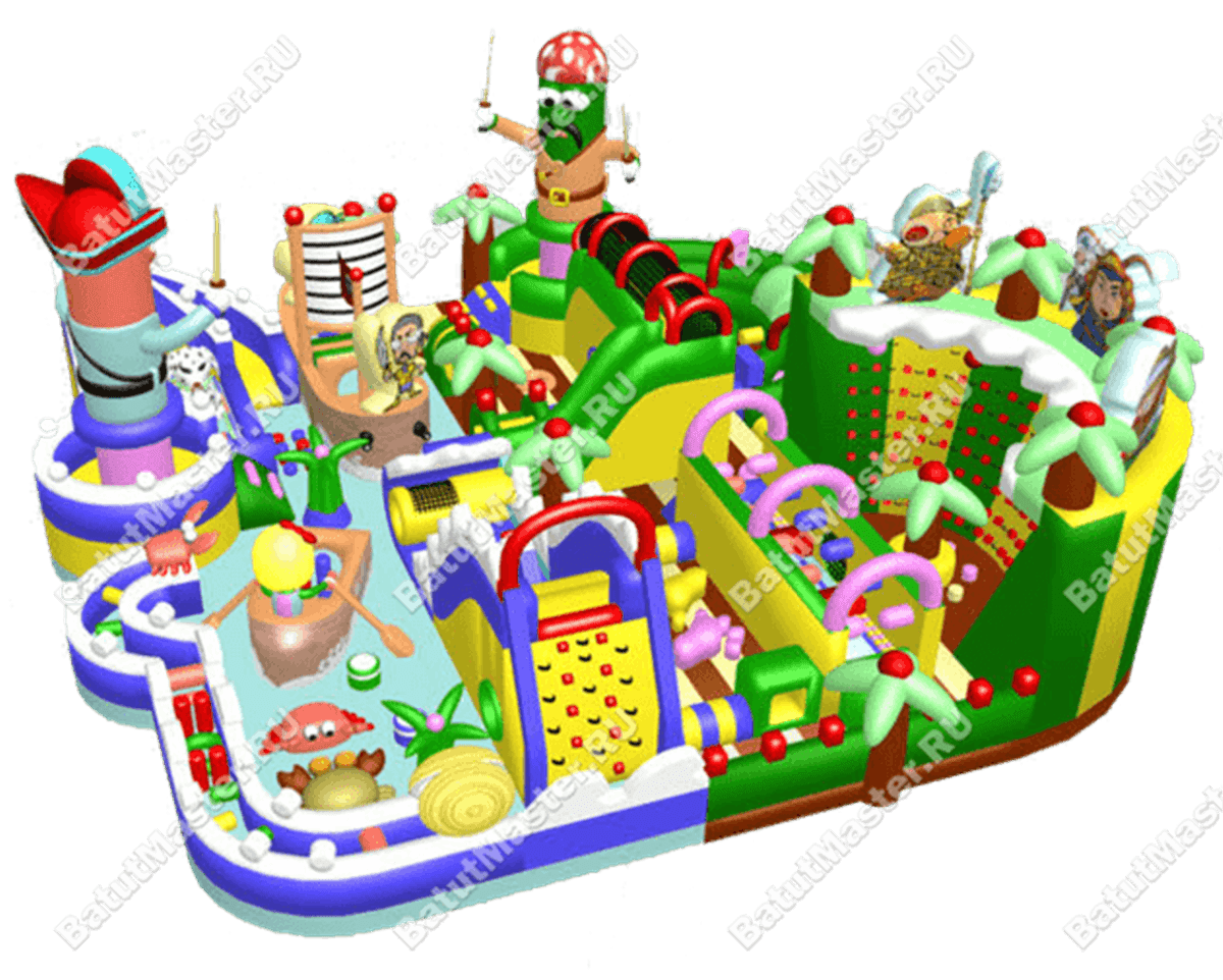 Это настоящий мега парк развлечений. Огромная площадка насыщена самыми разными героями, морскими животными, скалами, игровыми фигурами и горками. Здесь каждый элемент имеет свой отдельный цвет, поэтому общая картинка получается яркой и пестрой. Такой аттракцион станет оригинальным украшением в любой местности, а достаточная площадь позволит аттракциону окупиться за первые же месяцы.