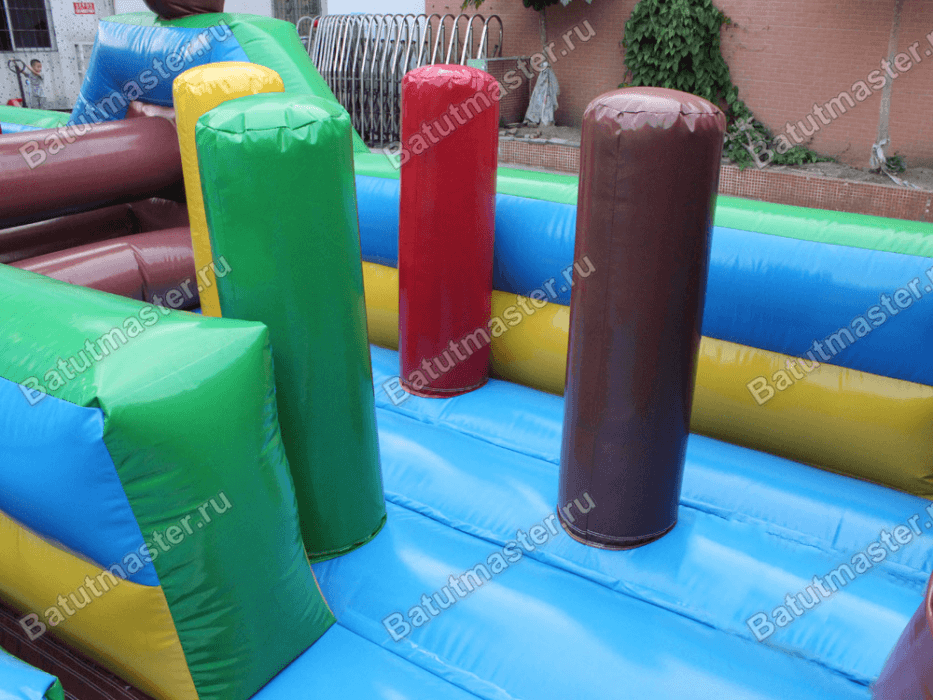 Коммерческий батут преимущественно состоит из зеленых, синих и коричневых цветов материала ПВХ, поэтому создает внутри себя особенную атмосферу. Каждая зона аттракциона обязательно является отдельным развлечением, один аттракцион одновременно состоит из нескольких. Владельцы площадки могут быть уверены в быстрой окупаемости своего проекта уже в первый месяц благодаря высокой проходимости.