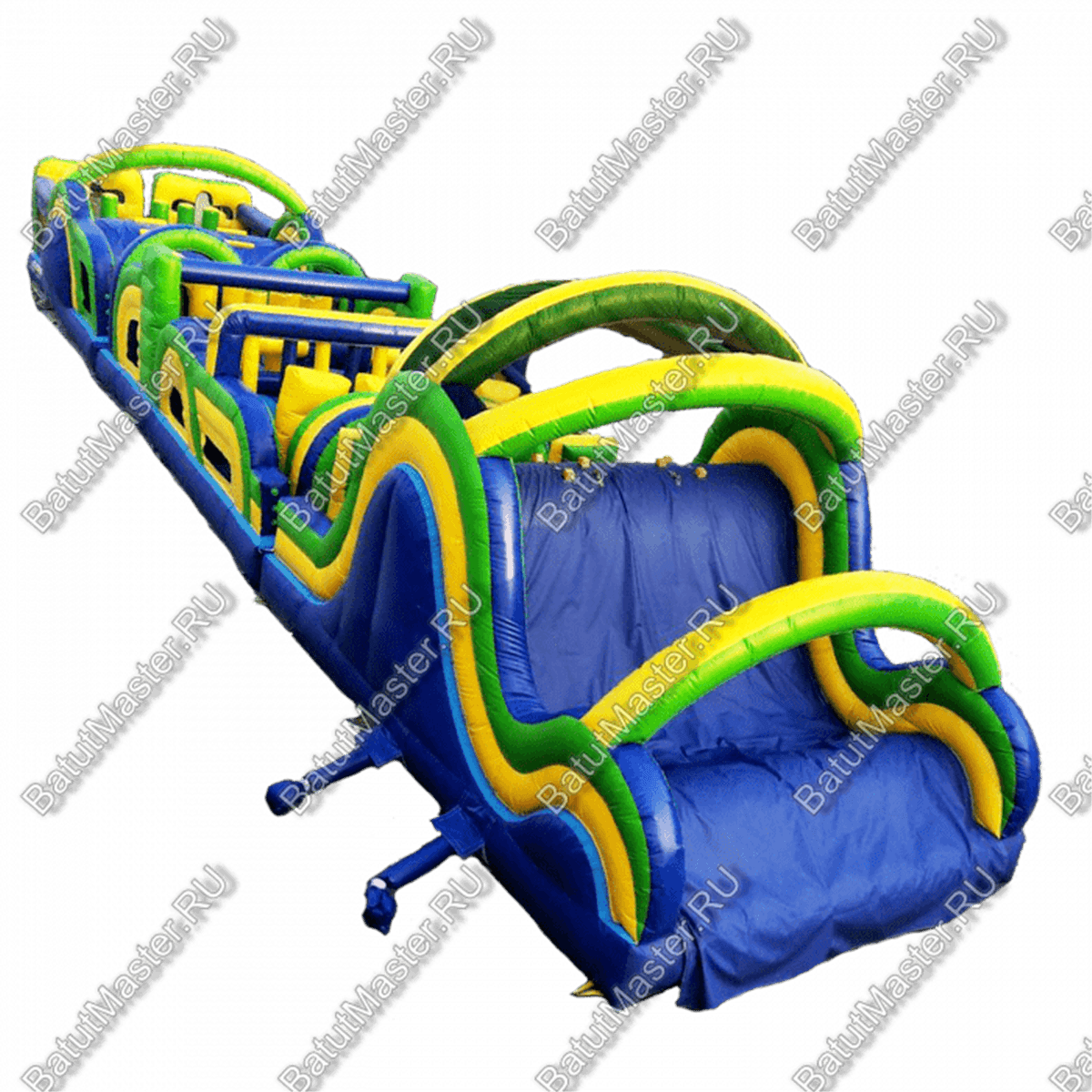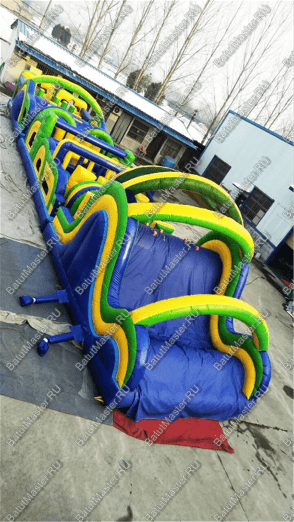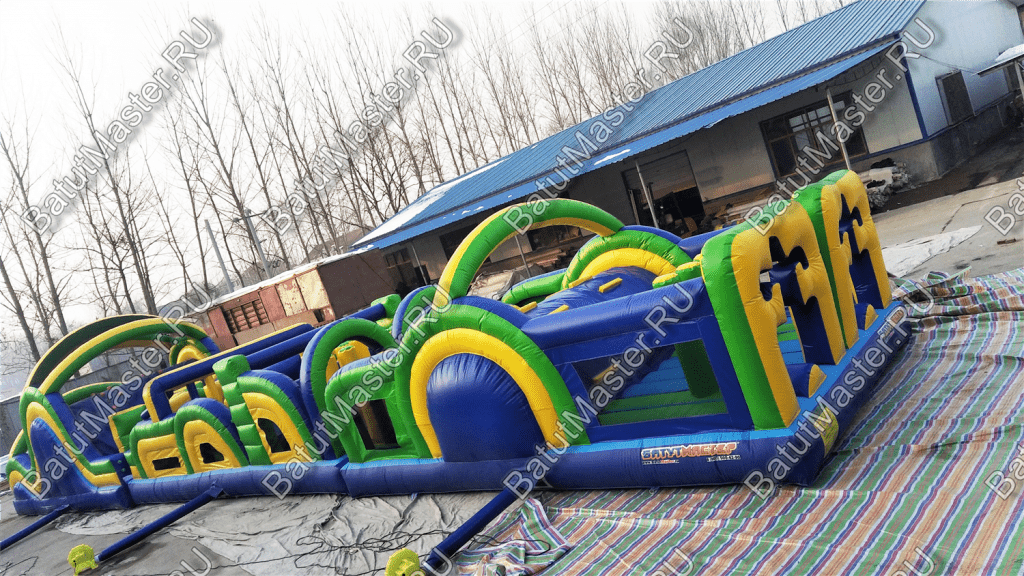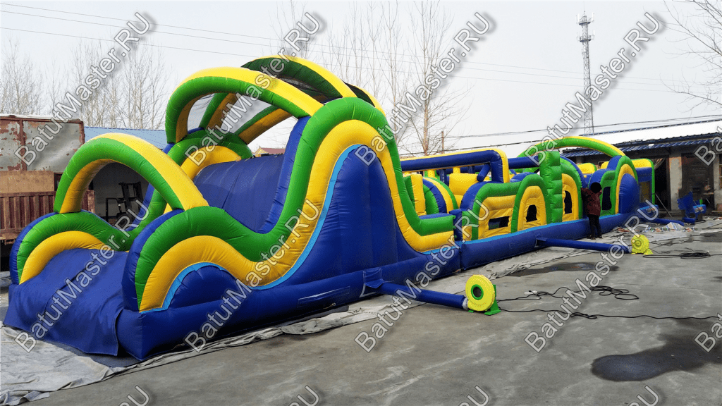 Коммерческий аттракцион может составляться с подобной конструкцией, образовывая еще более длинную и увлекательную полосу препятствий.