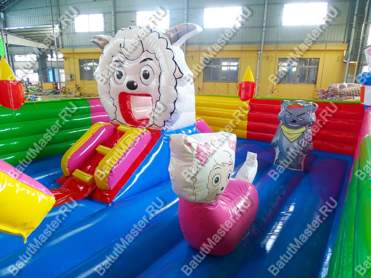 Специально для маленьких первооткрывателей разработана данная модель игрового комплекса. Тематика взята из всеми любимой сказки про волка и семеро козлят. Повсюду размещены надувные мягкие модули в виде козлят, а на горке размещена их мама коза. Здесь имеется домик, где малыши могут прятаться - все как в сказке. Опасный герой-волк здесь также присутствует. Здесь все привлекает внимание юных непосед. Увлекательные локации позволяют провести время с познанием животных.