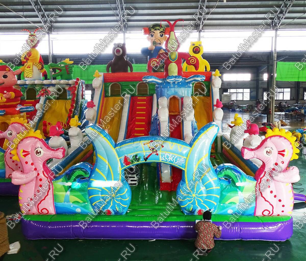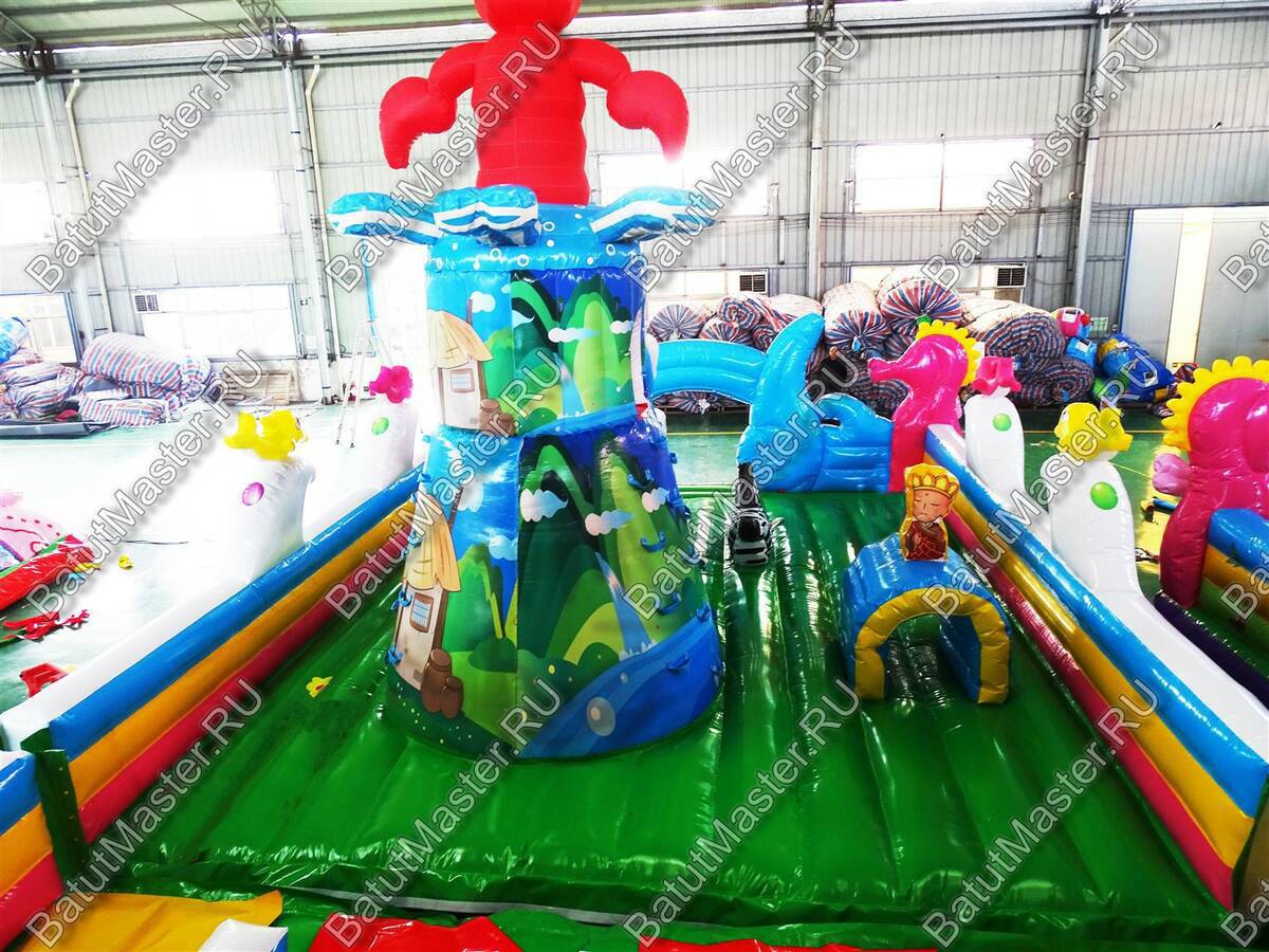 На входе маленьких посетителей встретит два морских конька, а когда он пройдёт внутрь, то увидит ещё немало персонажей, которые с приветливой улыбкой будут встречать своего гостя. Батут буквально пестрит надувными забавными фигурками, с которыми каждый малыш сможет поиграть, как ему захочется.