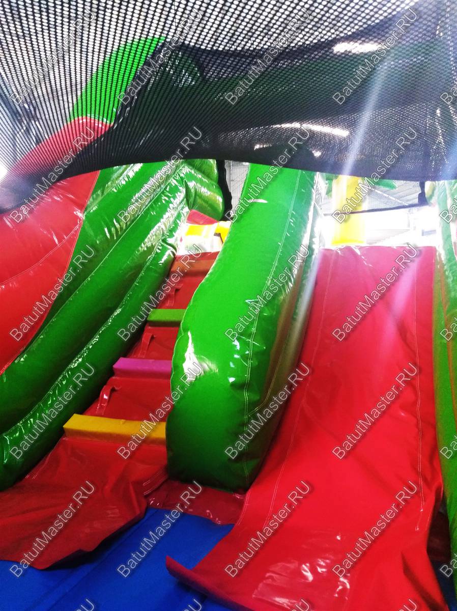 Это отличный вариант для бизнеса. Предпринимателям можно установить комплекс, как в помещении, так и на открытом воздухе и начать зарабатывать без дополнительных вложений. Коммерческий надувной батут выполнен из особо прочного, ламинированного поливинилхлорида. Такой материал не боится солнечных лучей и минусовой температуры, не растягивается и не трескается. Батут рассчитан на интенсивную эксплуатацию.