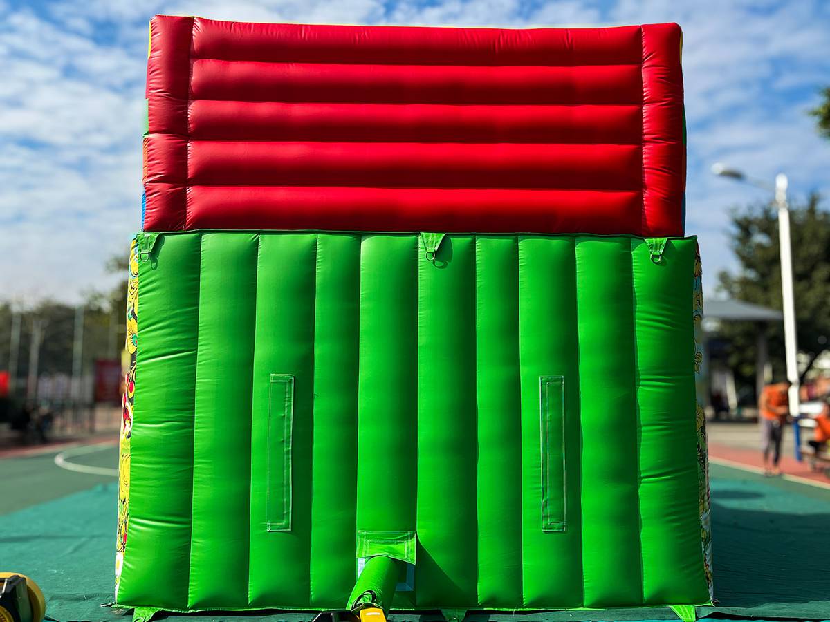 Детям доступна целая игровая зона с местами для прыжков, декоративными элементами, игровыми арками и надувной горкой с безопасной высотой старта 2 м. Все элементы продуманы так, чтобы дети могли бегать, прыгать, скатываться, преодолевать препятствия и играть с друзьями, развивая физическую активность и воображение.