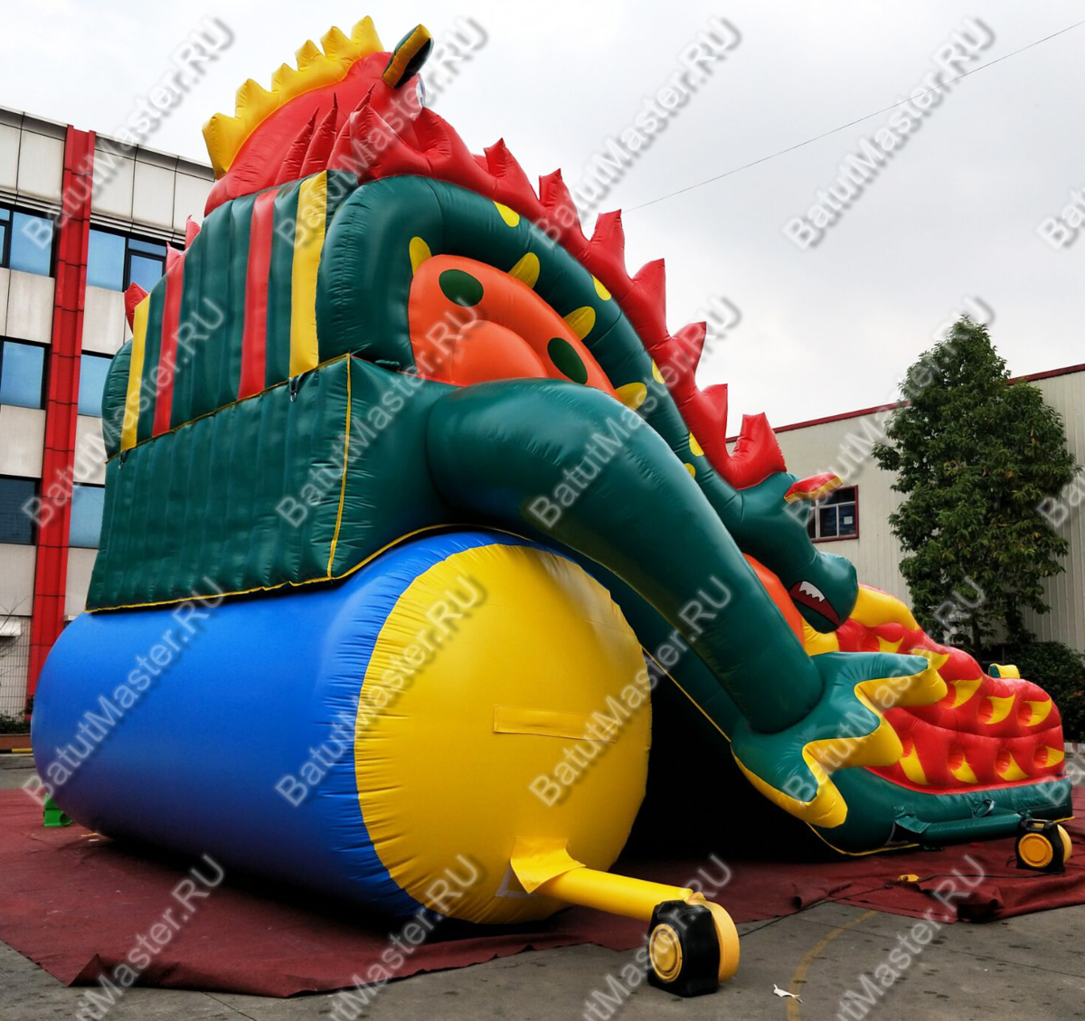 Всё вместе это выглядит потрясающе. Дети, увидев столь яркий батут-горку, непременно захотят прокатиться с него.