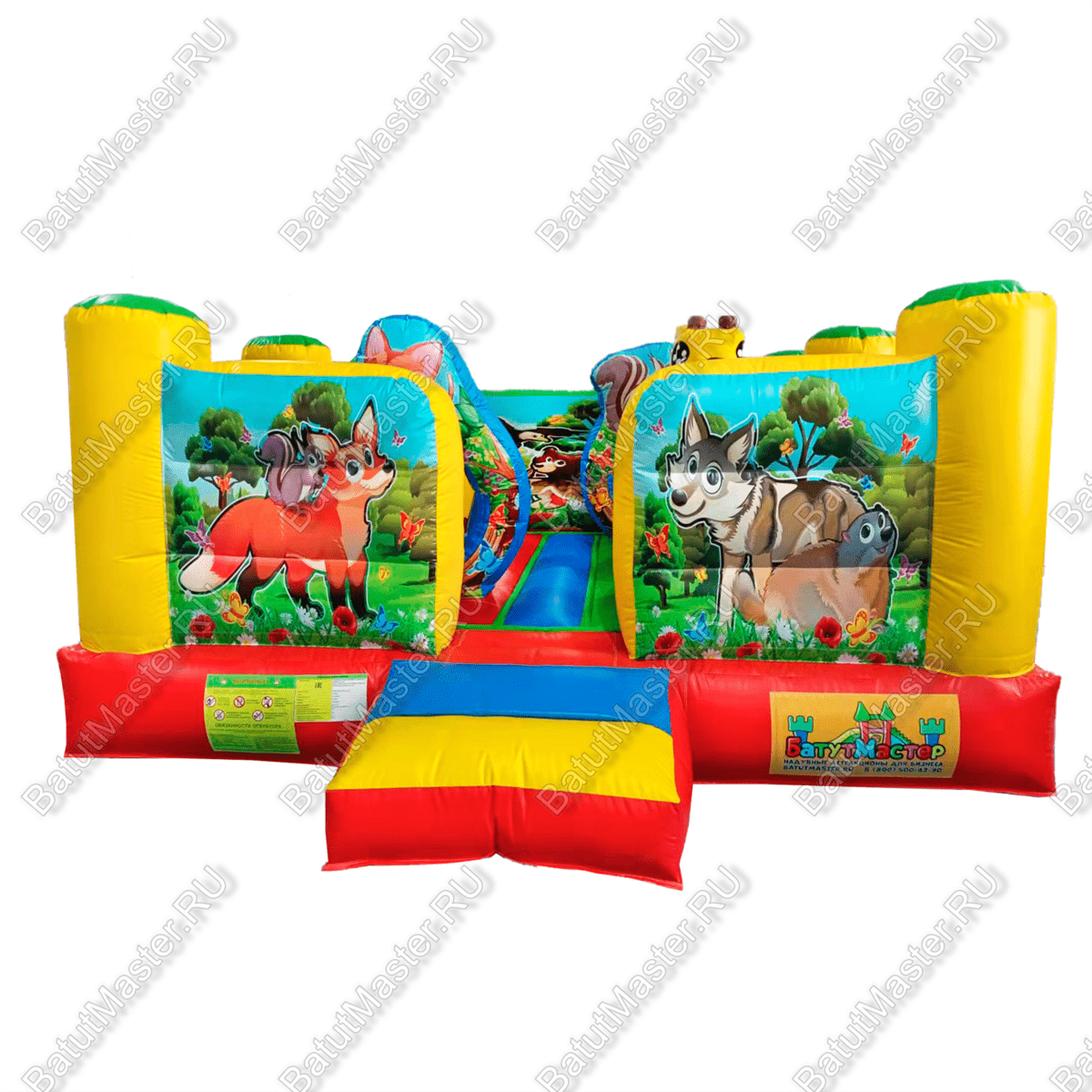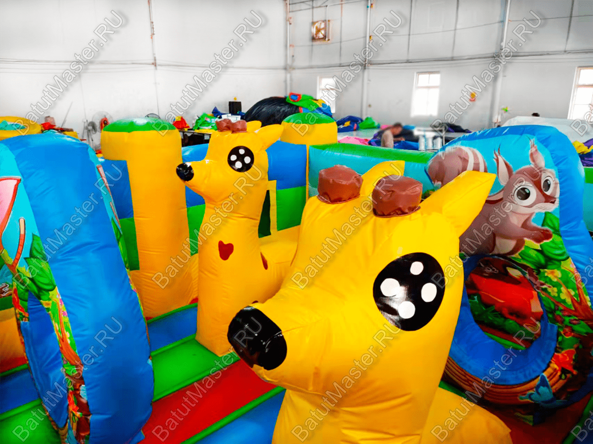 Дети просто обожают животных и веселье, и теперь это всё можно совместить в одном аттракционе. Спросите, как? Всё просто: коммерческий надувной батут «Лесное царство» совмещает в себе сразу различных зверушек, правда, надувных, а также море веселья, ведь детям будет невообразимо весело прыгать на батуте.