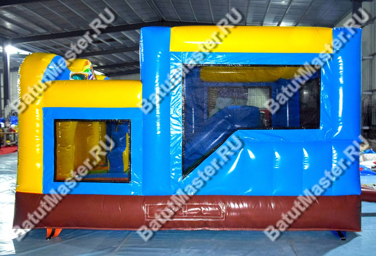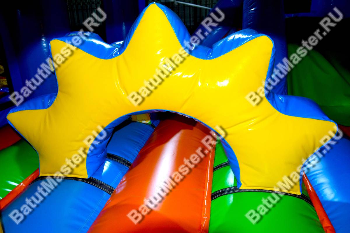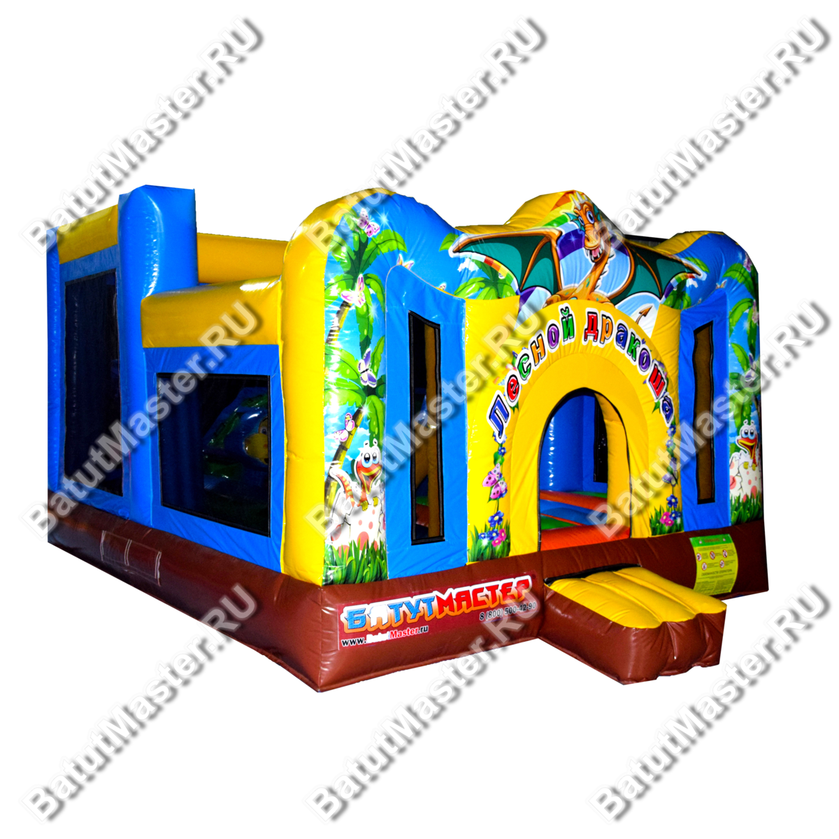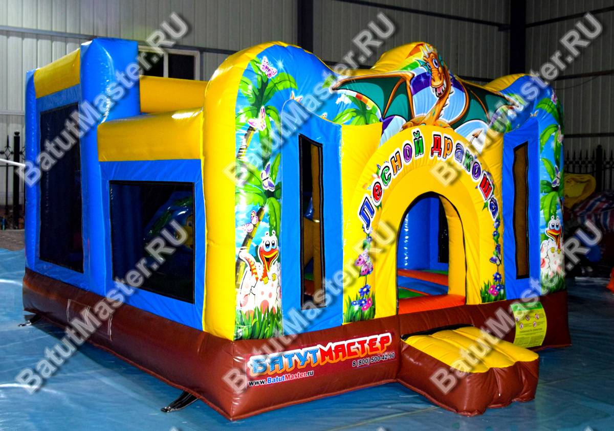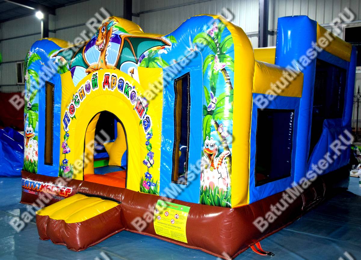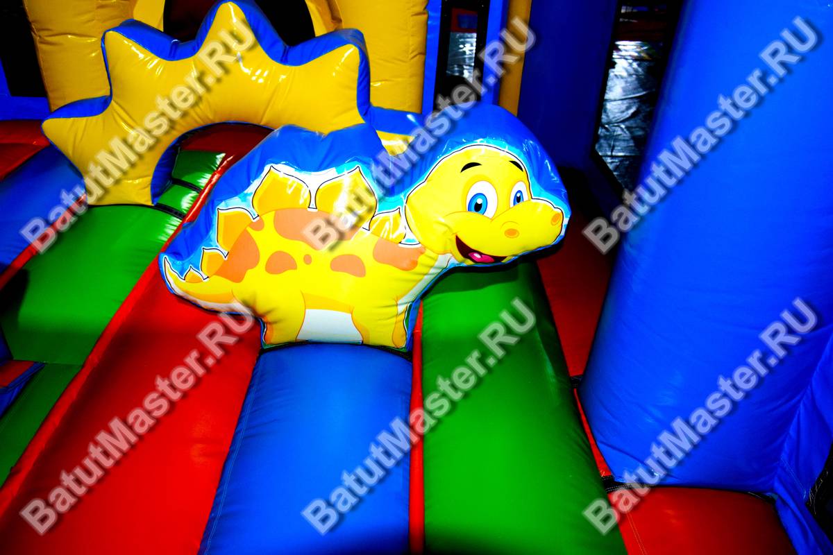 Именно в этом ярком батуте можно встретить забавного и, по всей видимости, доброго динозавра желтого цвета с огромными крыльями и забавной улыбкой. Совсем небольших размеров наземный батут легко вместится на небольшой территории, а его простая конструкция позволит развлечься даже самым маленьким посетителям. Уже на самом входе можно заметить интересные изображения яиц динозавров, из которых появляются маленькие животные, дальше все мягкие игровые фигуры будут говорить о том, что основными обитателями аттракциона являются именно динозавры.