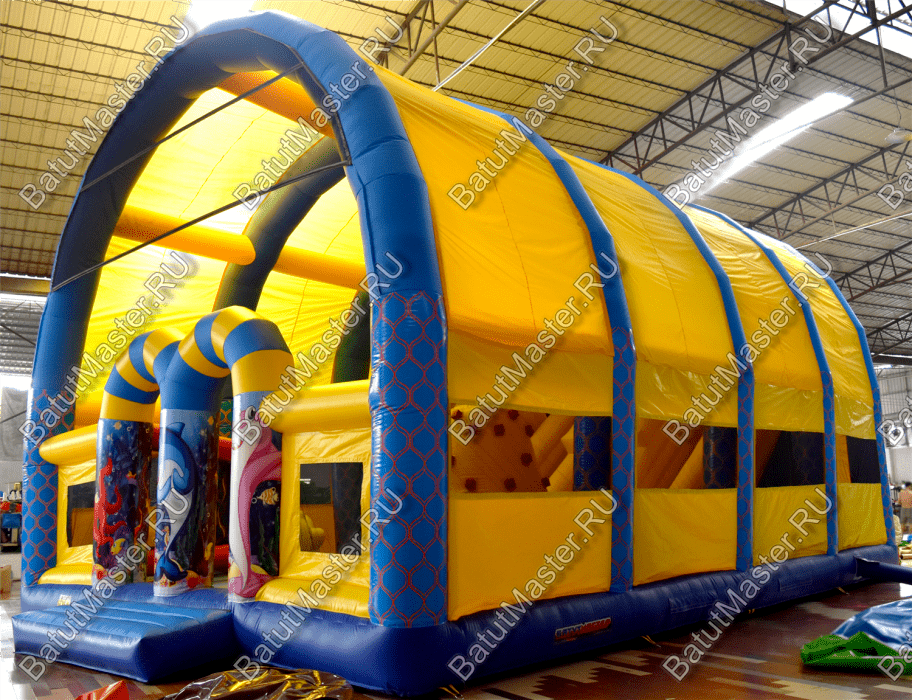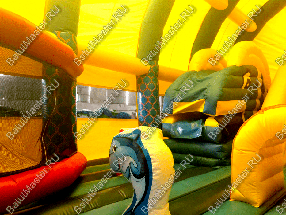 Бегать, прыгать и забираться на мягкие модули – это именно то, что нужно детям в период развития. Здесь установлены модули в виде дельфинов и других морских обитателей. Забираться на большой скалодром можно дружной командой и проверять себя на ловкость. В конце батута имеется горка с подъемом. Стоит отметить большую прыжковую зону.