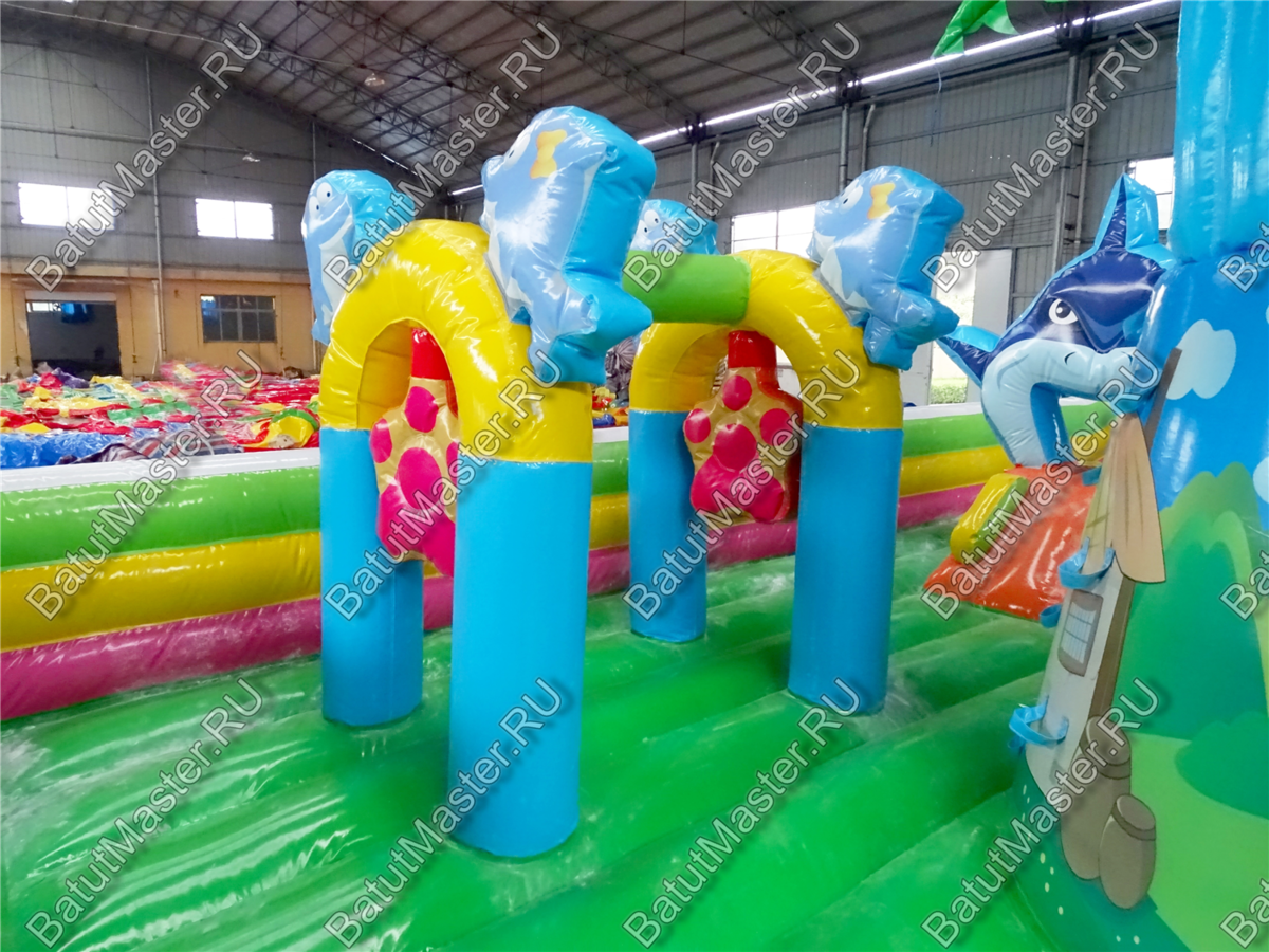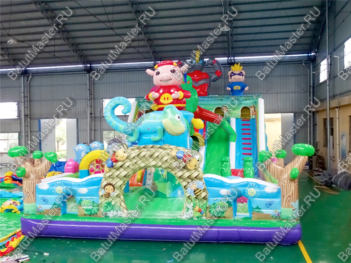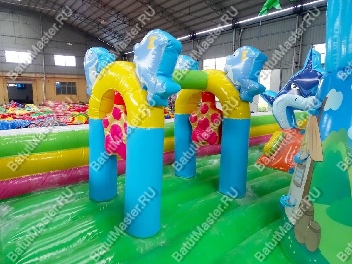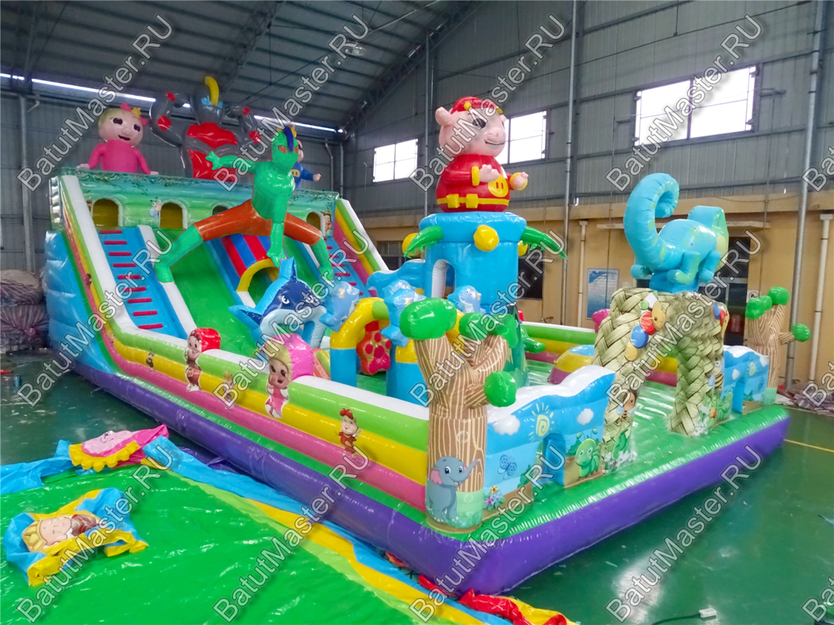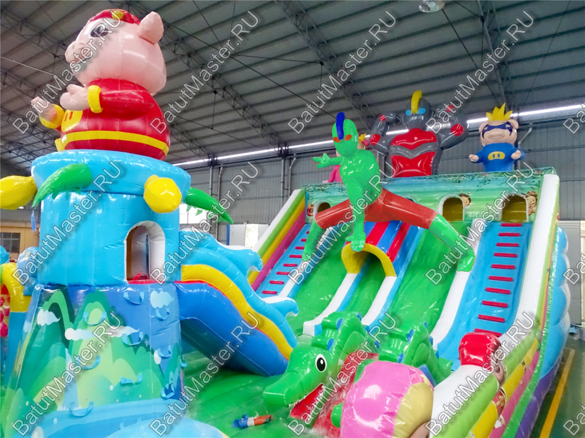 Детей порадует многообразие игровых надувных фигур, по которым можно ползать, прыгать и бегать. Помимо этого, есть и различные игровые элементы, такие как башни и маленькие горки. Есть тут и большие горки, с которых очень весело кататься.