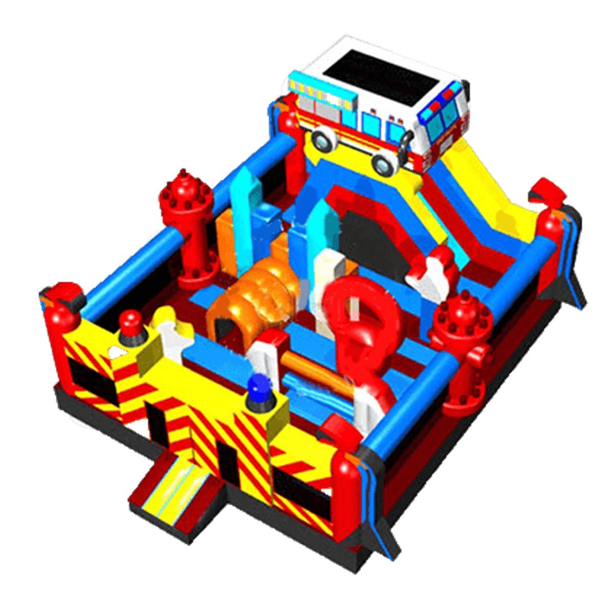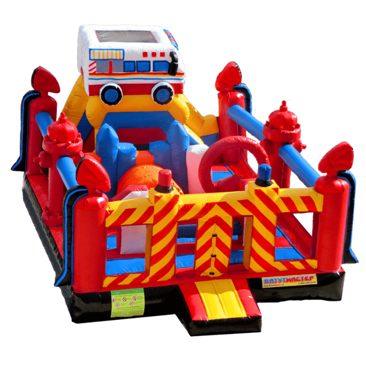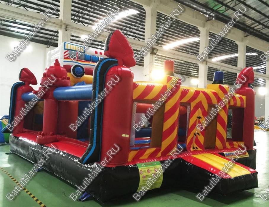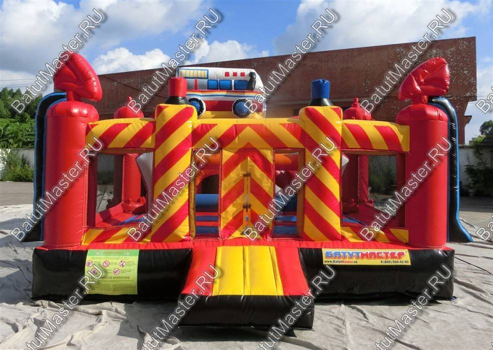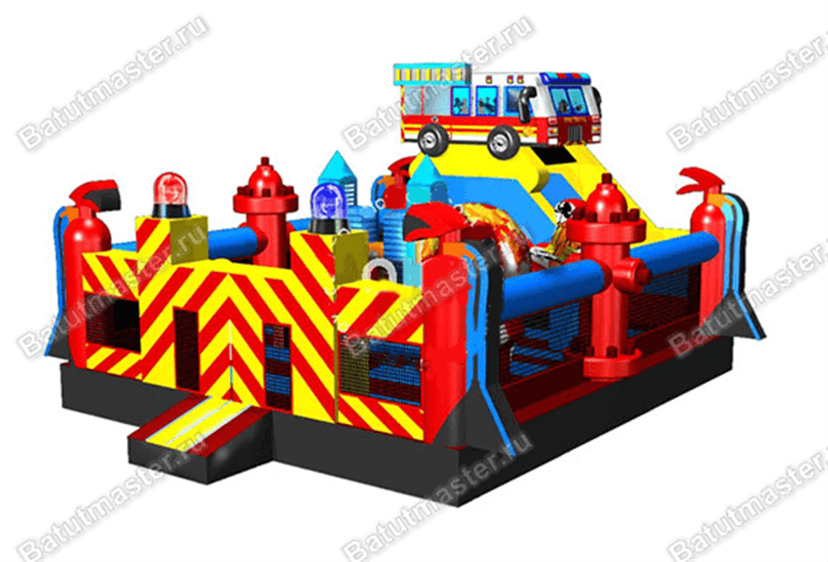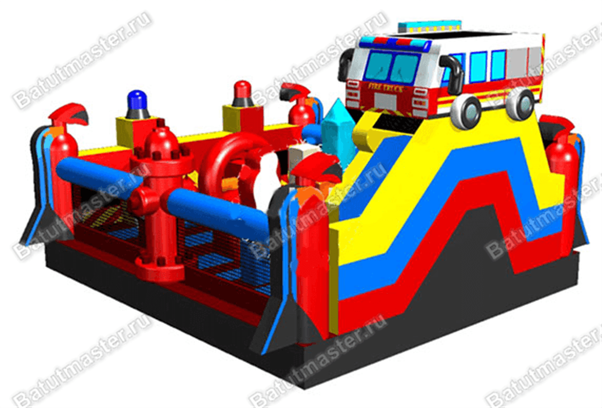 Надувной батут «Пожарная площадка» - это яркий и тематичный игровой комплекс, сочетающий в себе самые интересные и необычные модули, играя среди которых дети испытают незабываемые эмоции. Батут оснащен также модулями, которые развивают и улучшают физические данные у детей разного возраста. Юные непоседы сразу узнают тематику батута, ведь различные предметы пожарных, а также машина скоро помощи, стоящая на верху, и являются главным атрибутом комплекса.