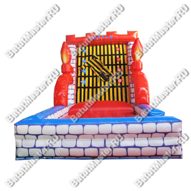 Сам аттракцион сделан в виде одной большой стены замка с большой платформой. Имеются также некоторые элементы, дополняющие общую атмосферу средневекового построения: надувные полыхающие факелы, прорисованные кирпичи и решётка на жёлтом фоне. Проработанный дизайн смотрится качественно и завлекающе. Дети однозначно не смогут пройти мимо такого липучего аттракциона.