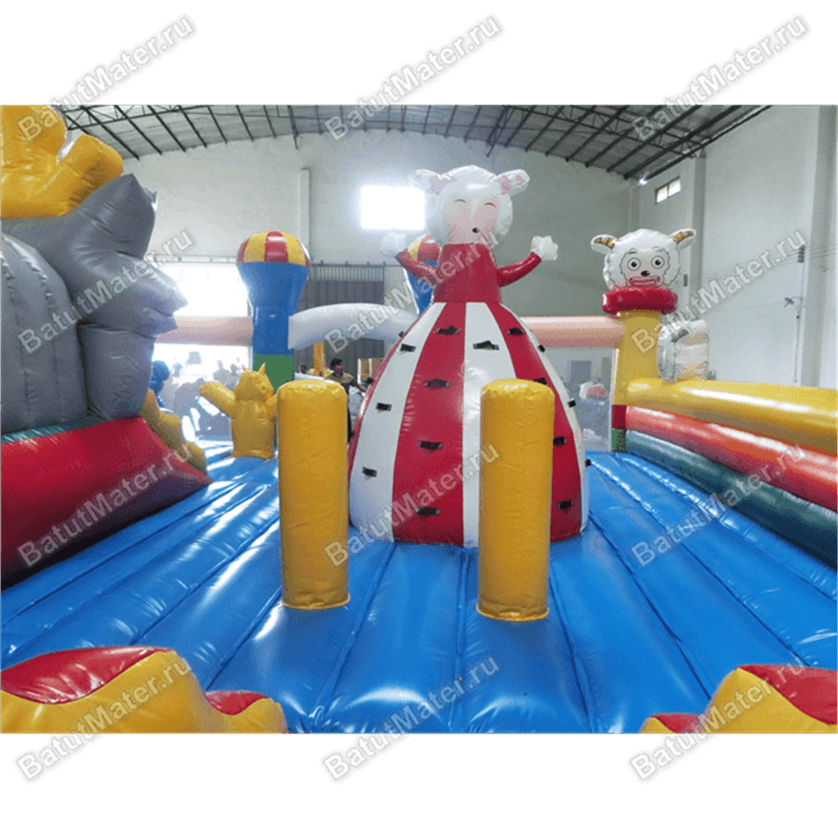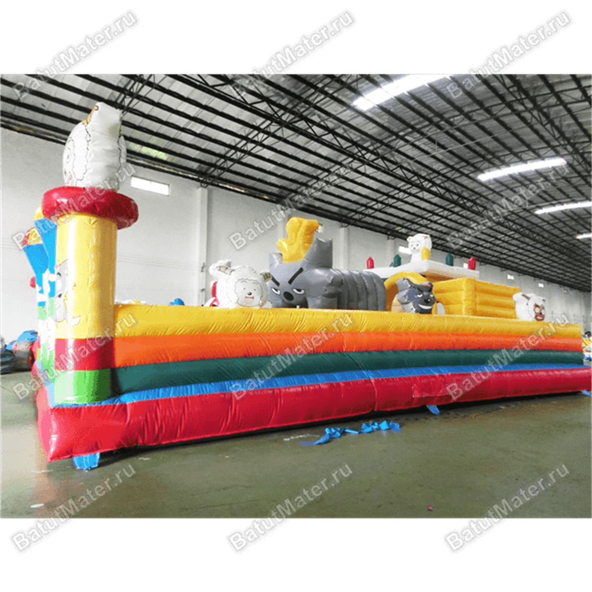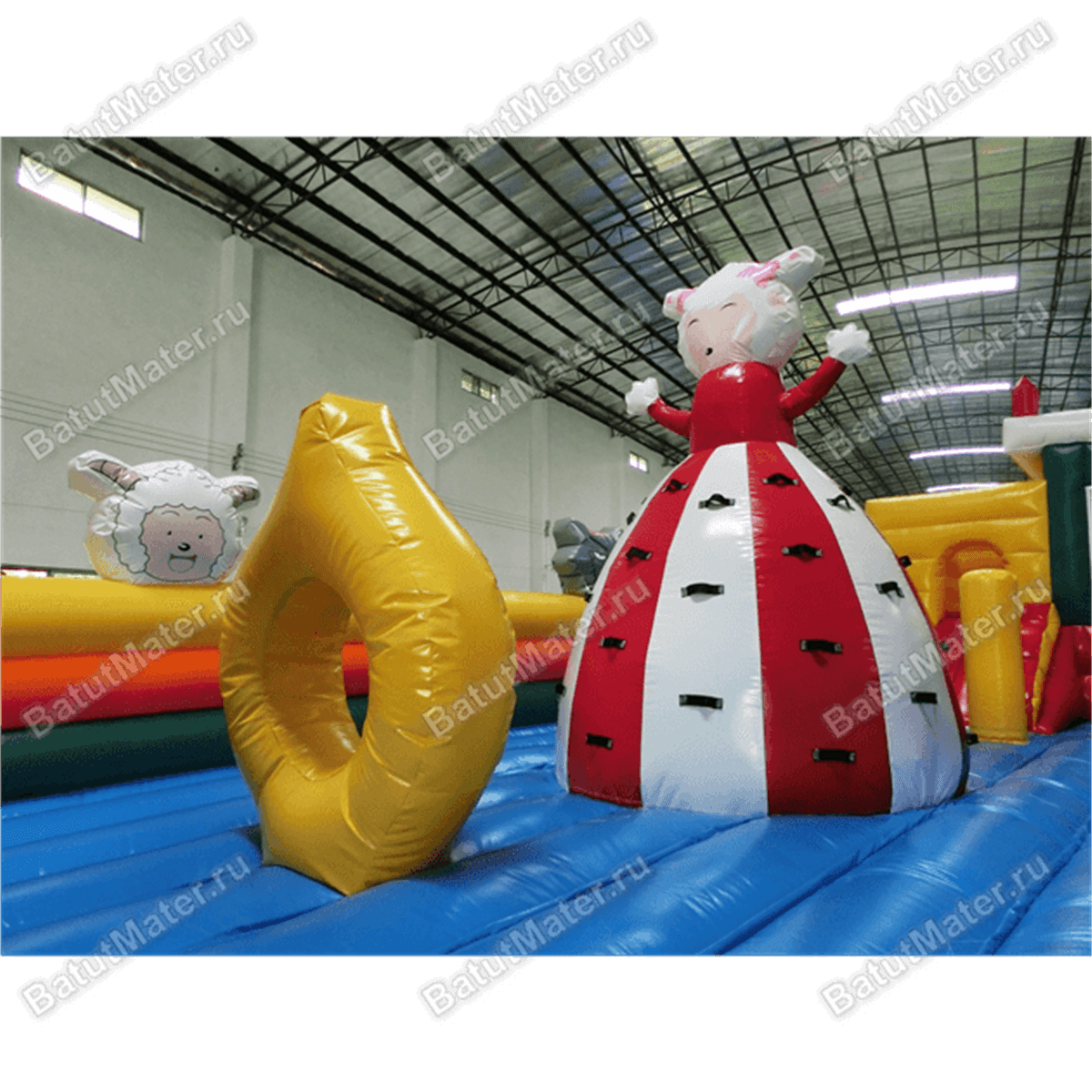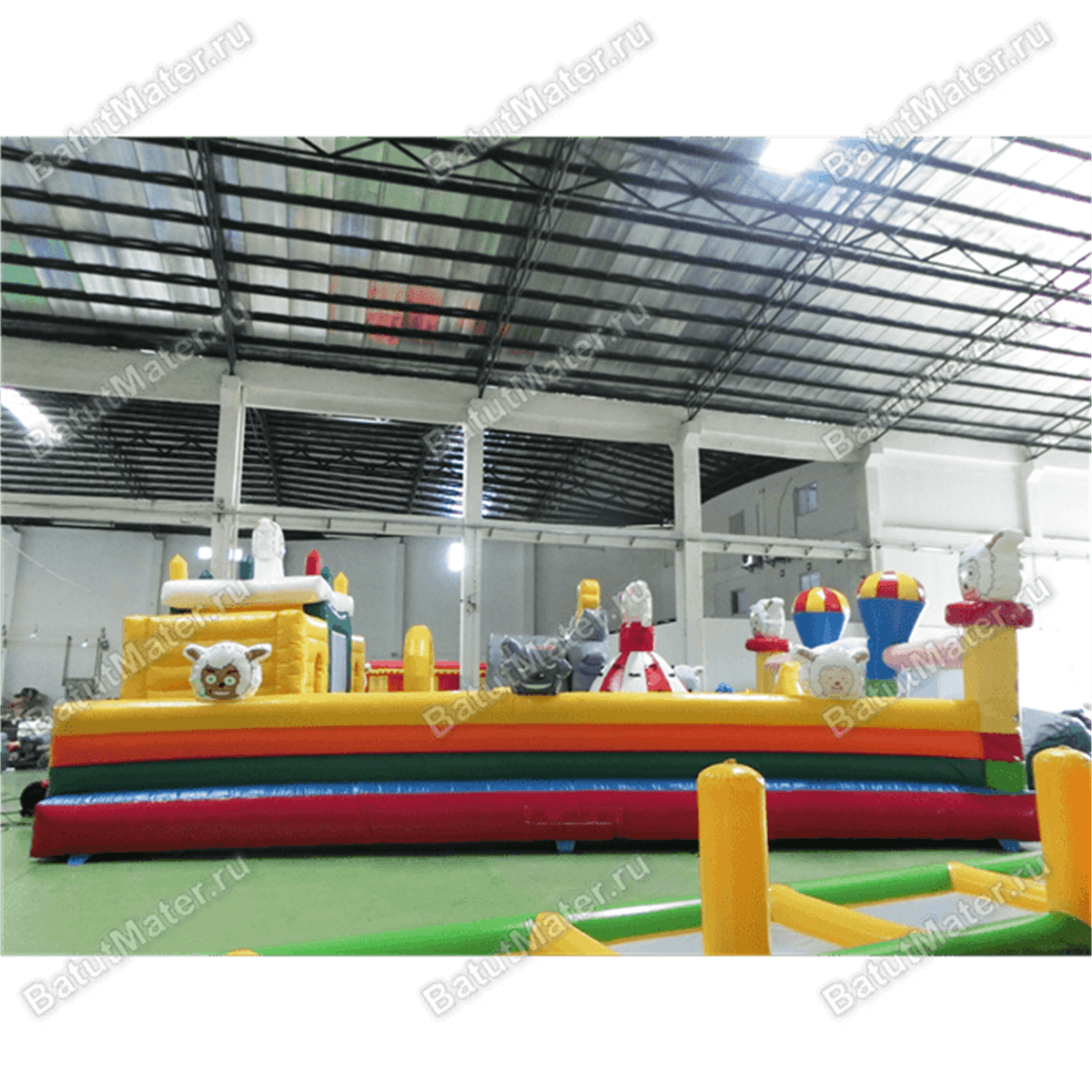 Забавные надувные барашки здесь присутствуют повсюду: на каждом угловом столбе, внутри батута на домике и просто в виде игровых элементов. Почти каждая часть аттракциона украшена изображением какого-нибудь животного, а столбы в арке на входе вверху сделаны в виде небольших воздушных шаров.