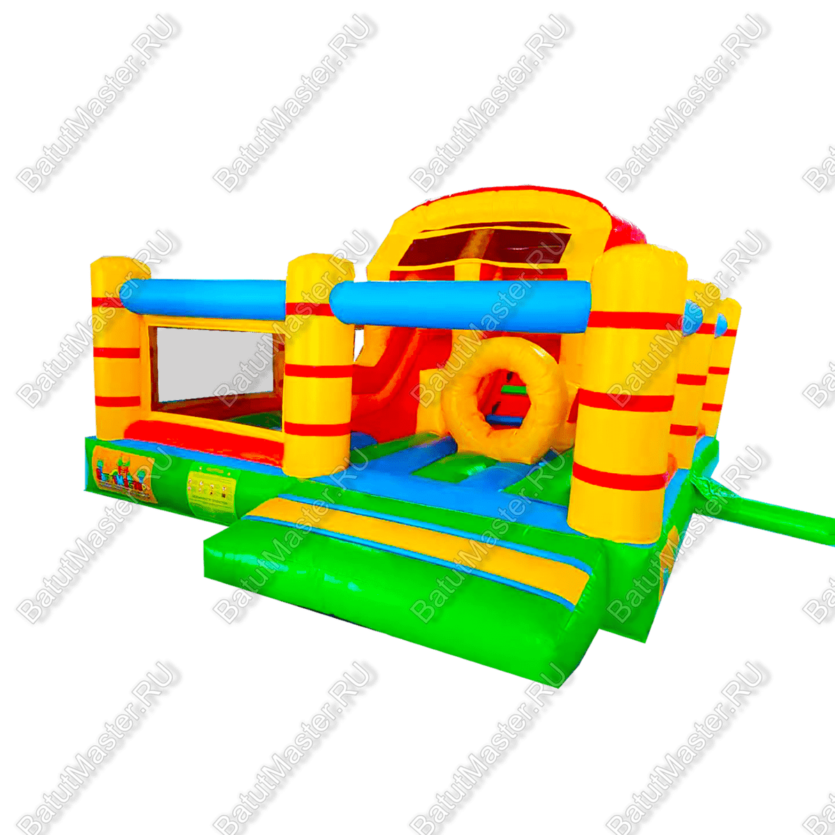 Надувной батут «Спорткомплекс 2» - это небольшой игровой комплекс, который доставит детям массу удовольствия и разнообразит их времяпровождение. Благодаря своей функциональности он позволяет прыгать, кувыркаться, а также спускаться с горки. По всему периметру прыжковая зона окружена прочной сеткой. Это дает возможность родителям видеть, как играют дети, а также обеспечивает хорошую вентиляцию воздуха.